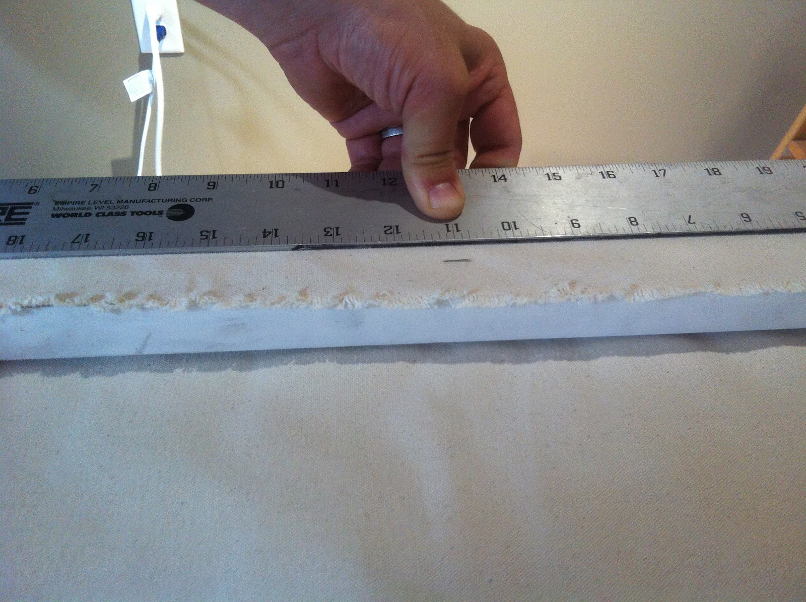 Then measure the distance between the corner staples on each side, mark the centers and re-staple for what is now the exact centers of each side, again moving in a counter-clockwise direction around the frame. Pull each side of the canvas taunt before placing the staple. While being sure that the staples are in the center mass of the stretcher width, keep measuring between all of the staples and mark off all the centers. Pulling the canvas taunt, staple all the centers one at a time moving counter-clockwise. If your hands are not strong enough to pull the canvas tight, use a canvas pliers to easily pull the canvas to the perfect tautness on the stretcher frame.