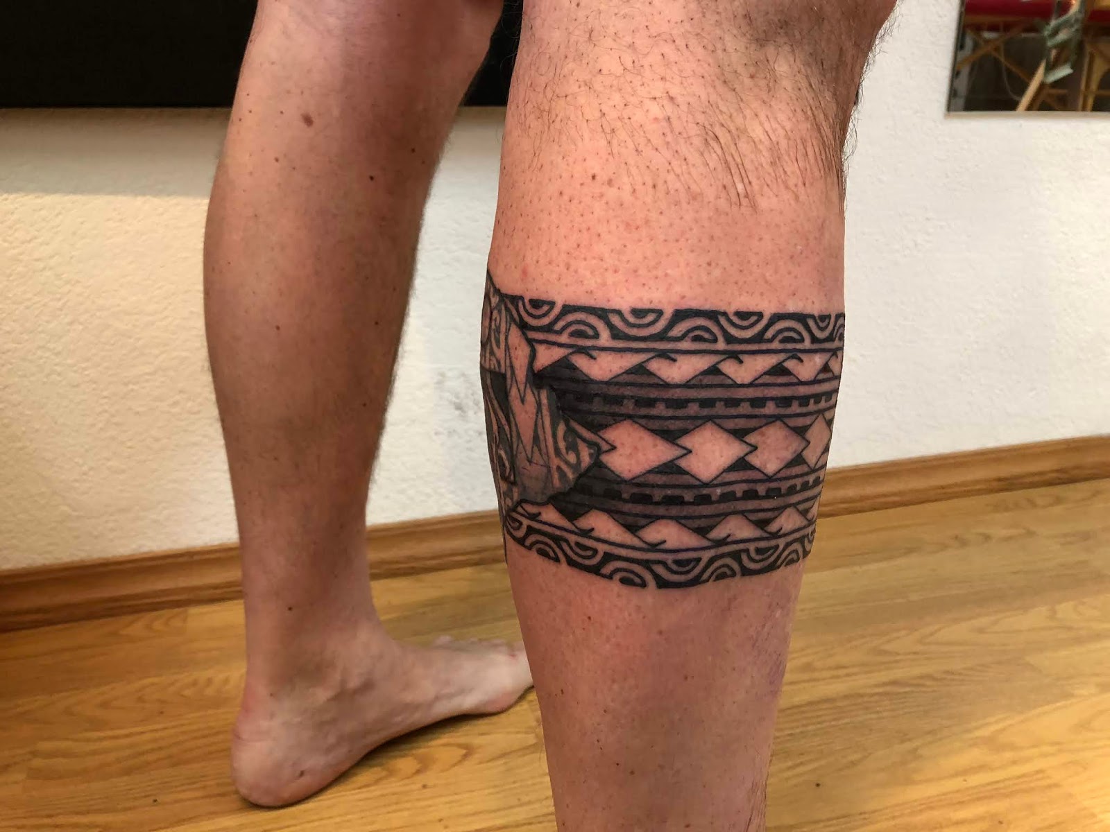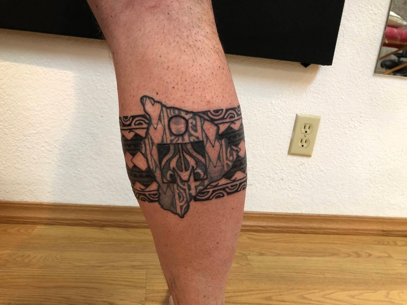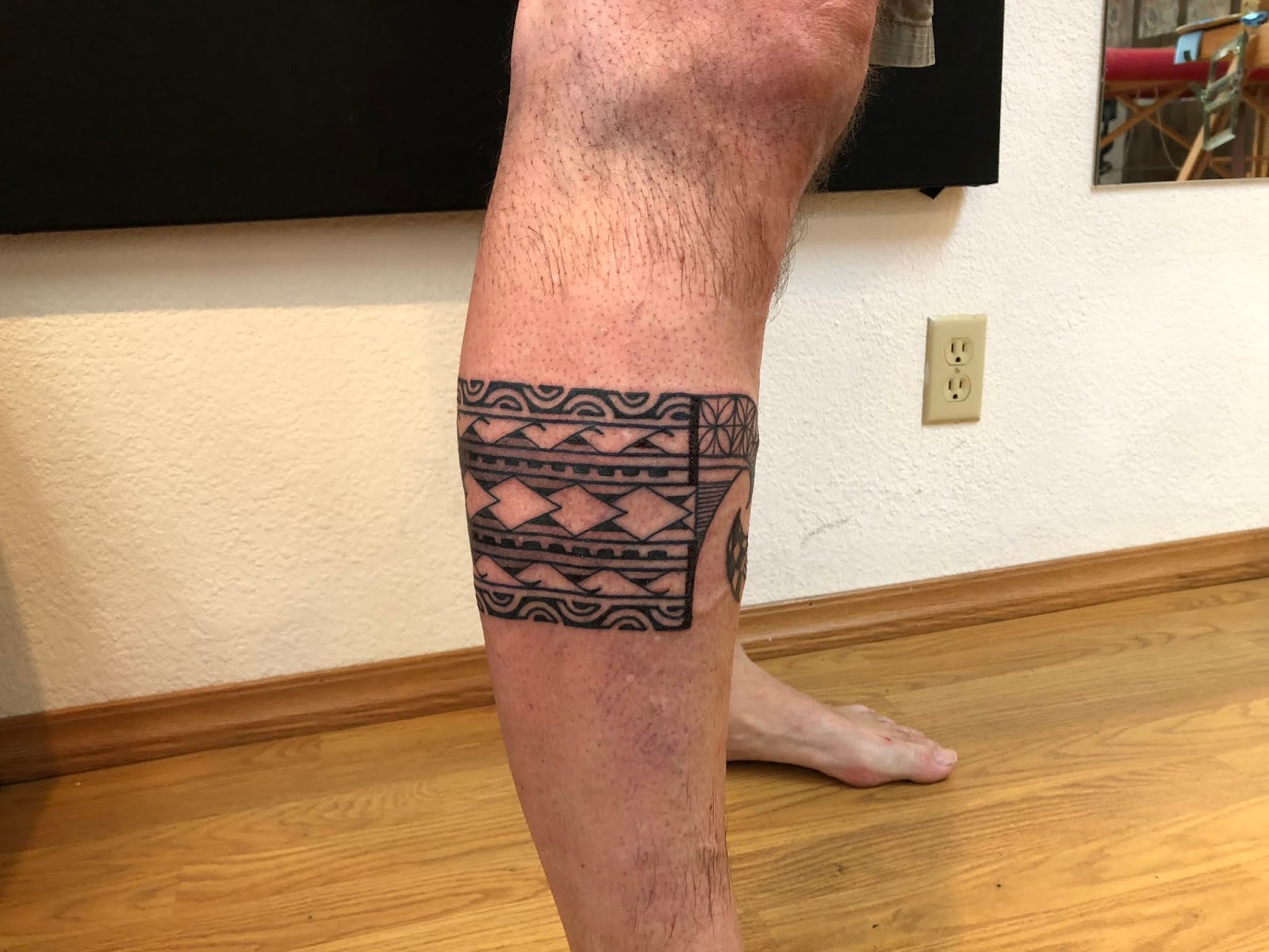 Another client from the past came back for more. These days most of who I work with are all past clients. I would say that new clients are 25% of my business. This guy loved my first tattoo and just keeps coming back to me. It is always a good feeling when your clients just keep coming back. We first did the big island in honor of his Iron Man run, and now we banded his leg with simple masculine Polynesian tribal.