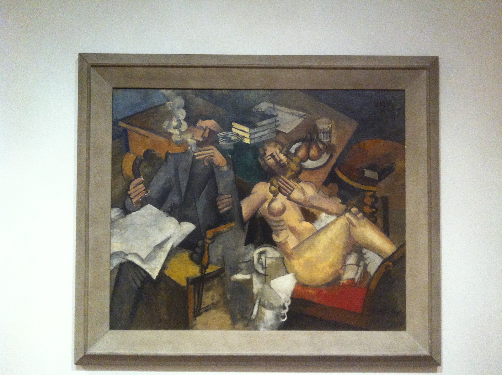 The painting “Married Life” by Roger de la Fresnaye, depicts a man reading the paper and smoking a pipe with his naked wife around his arm. That being how the artist views marriage is funny, seriously funny, and I am sure that artist laughed at it. If you can’t see the humor in that, I can not help you. Oddly, this painting has had a profound impact on my compositional choices over the last 10 years. I truly admire the composition, the placement and bend of the objects, and the line work on the figures. it is a strong cubist work, and I’ll bet the artist was proud of his little joke. “Married Life” is hanging out at the Minneapolis Institute of Arts on permanent display. I have been lucky enough to be able to spend a great amount of time studying this work.