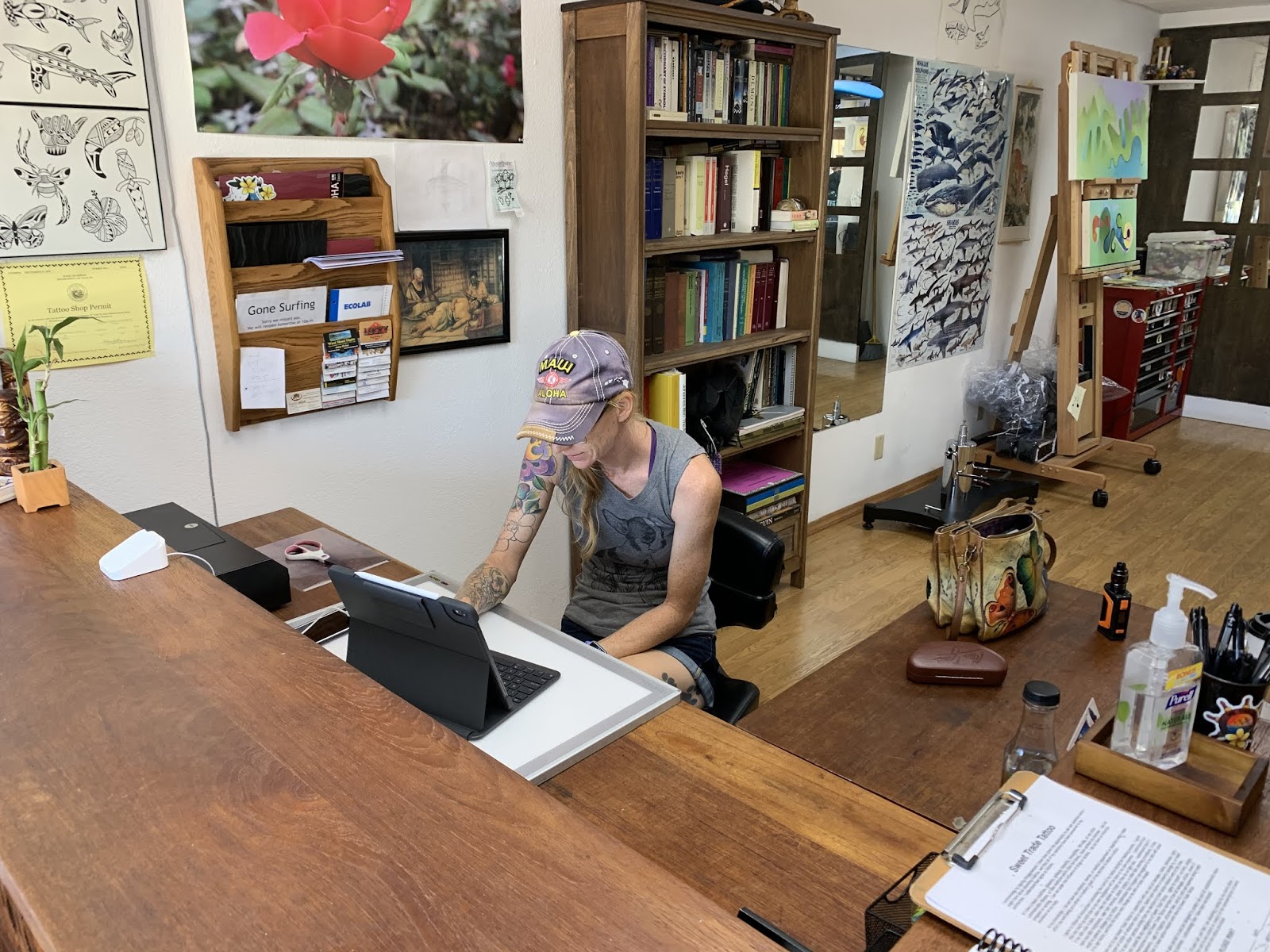 Athena comes into the studio to help me a few times a month. I mostly run the studio by myself, tattooing all day and taking care of new customers as they come in. On days like to day when I am booked solid for 12 hours straight with no time for a break she comes into the studio to handle the daily foot traffic. It’s fun owning a couple of businesses together as husband and wife, and we really are a good team together. Athena and I work really hard, and we keep it balanced. We have a true mom and pop store, and its everything we ever dreamed of.