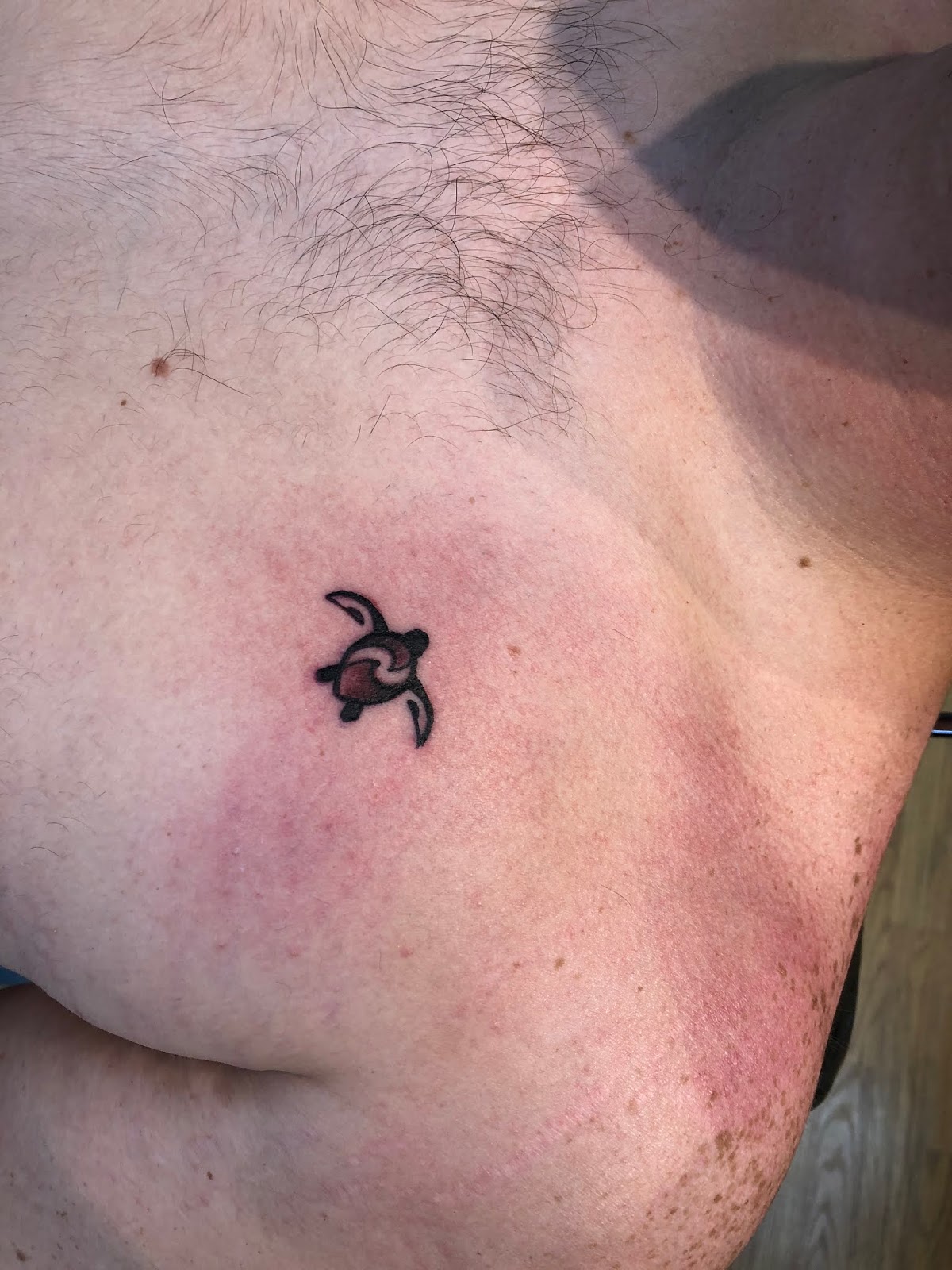 Today was amazing. I tattooed all day well past closing hours. It was awesome, and this tattoo of a petroglyph turtle was my favorite of the day.