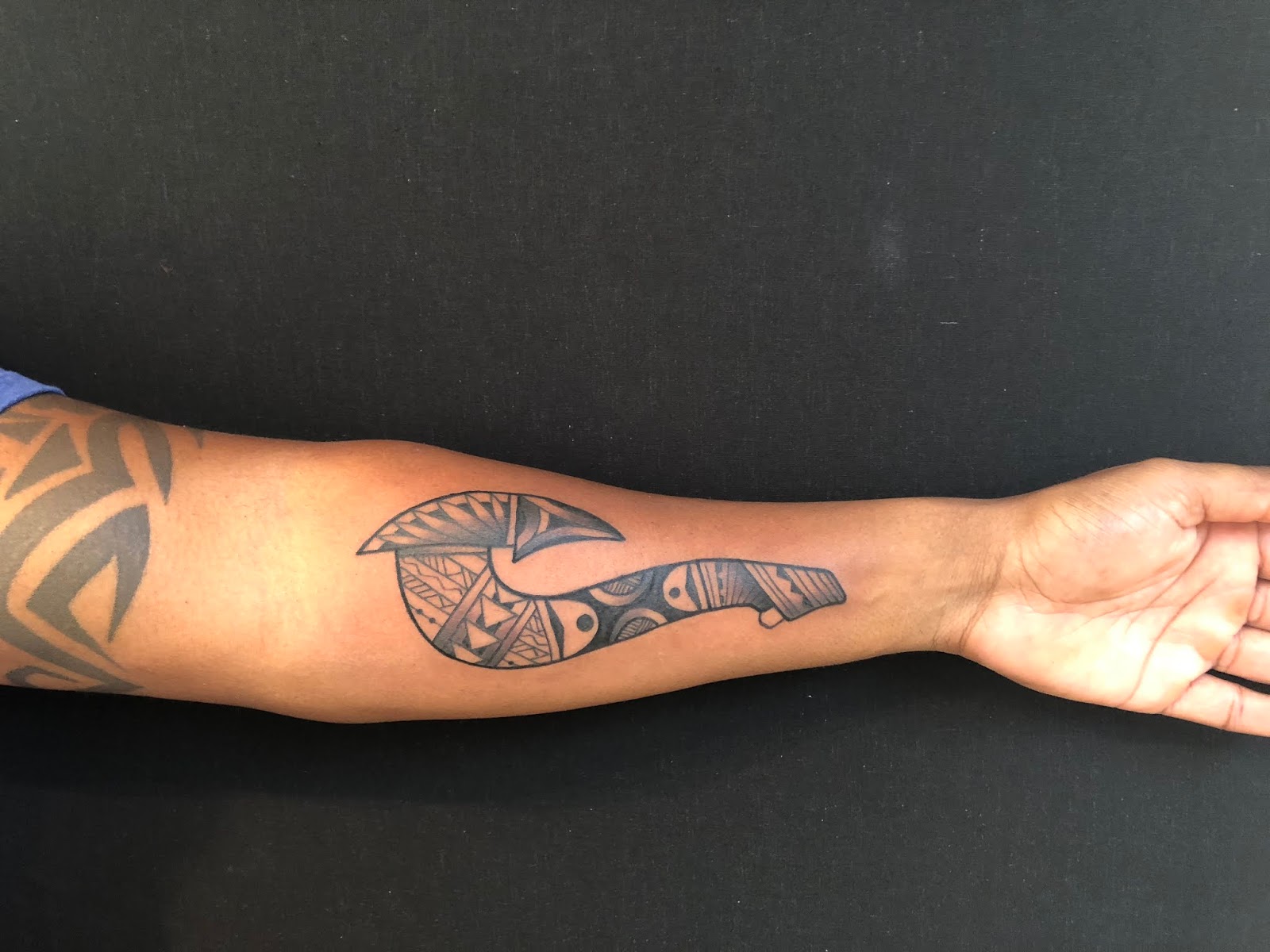 A nice walk-in Polynesian fishhook tattoo.  It has been really slow lately, maybe that is because of the insanely fucking negative energy that’s been vomiting all over the studio over the last few months.  I’m gonna move on soon if this shit doesn’t change.  I am a happy guy, and I love this place deeply.  I cannot in any way handle the consistent negative energy of unhappy people.  I have tried my very best to improve my friend’s life, to help him get through whatever it is that he’s going through.  It’s not working, and I am about to call it and simply make it all about me.
