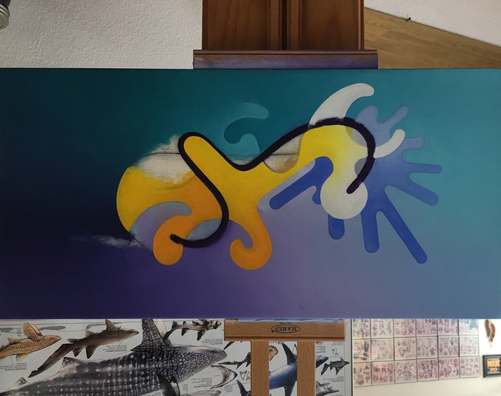 I have completed my second study here on Maui; it is simple.  I was working with the octopus and its name “he’e” meaning too slide as it slides along the ocean currents.  This is still all preparation for my large composition.  It is nice to get my hands back to where I want them to be.