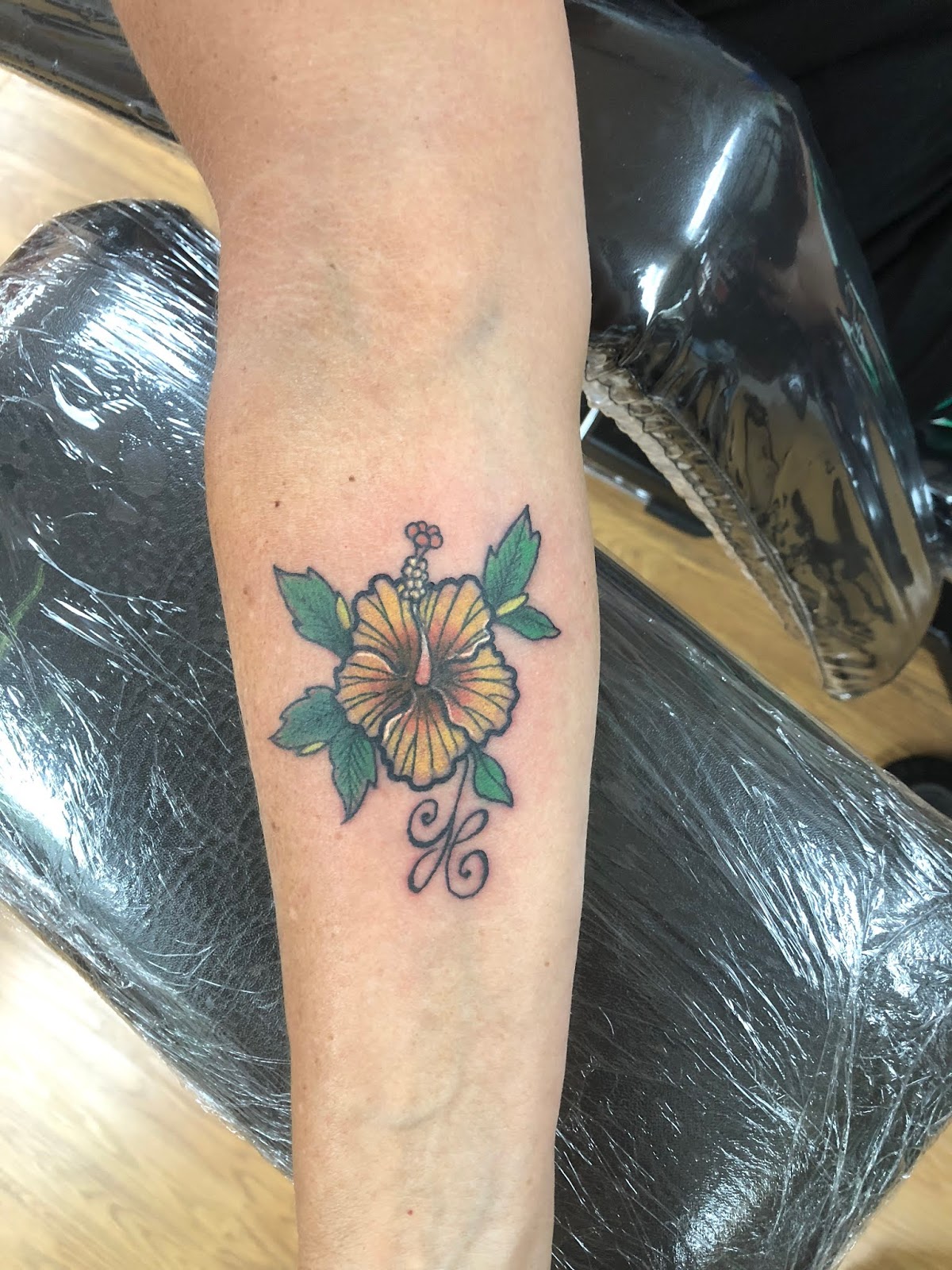 I dig this tattoo. The Hibiscus flower is always fun to draw.