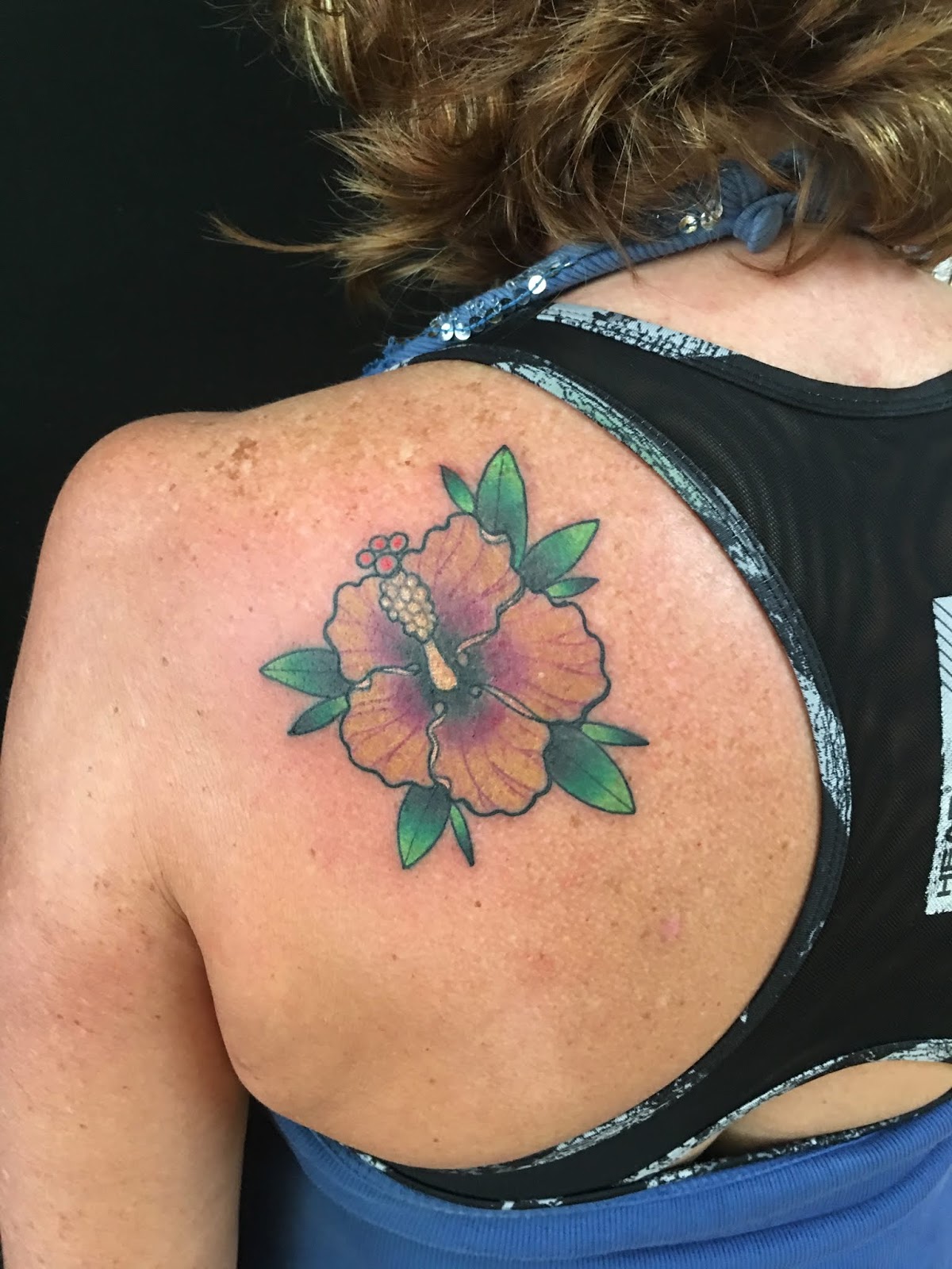 Another fun Hibiscus flower tattoo. Today was a typical day; busy and steady.
