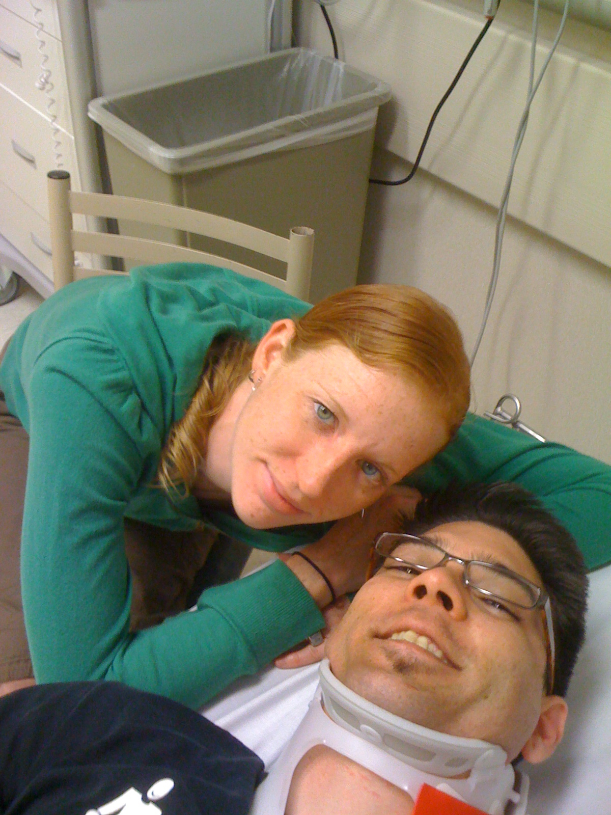 Adam was hit by a car that ran a red light while the driver was talking on her cellphone.  He was ridding his bike and he had a bike helmet on.  I am so thankful he was wearing his helmet because we’re pretty sure it saved his life.  He is hurt pretty badly and we aren’t sure what is going to happen next.