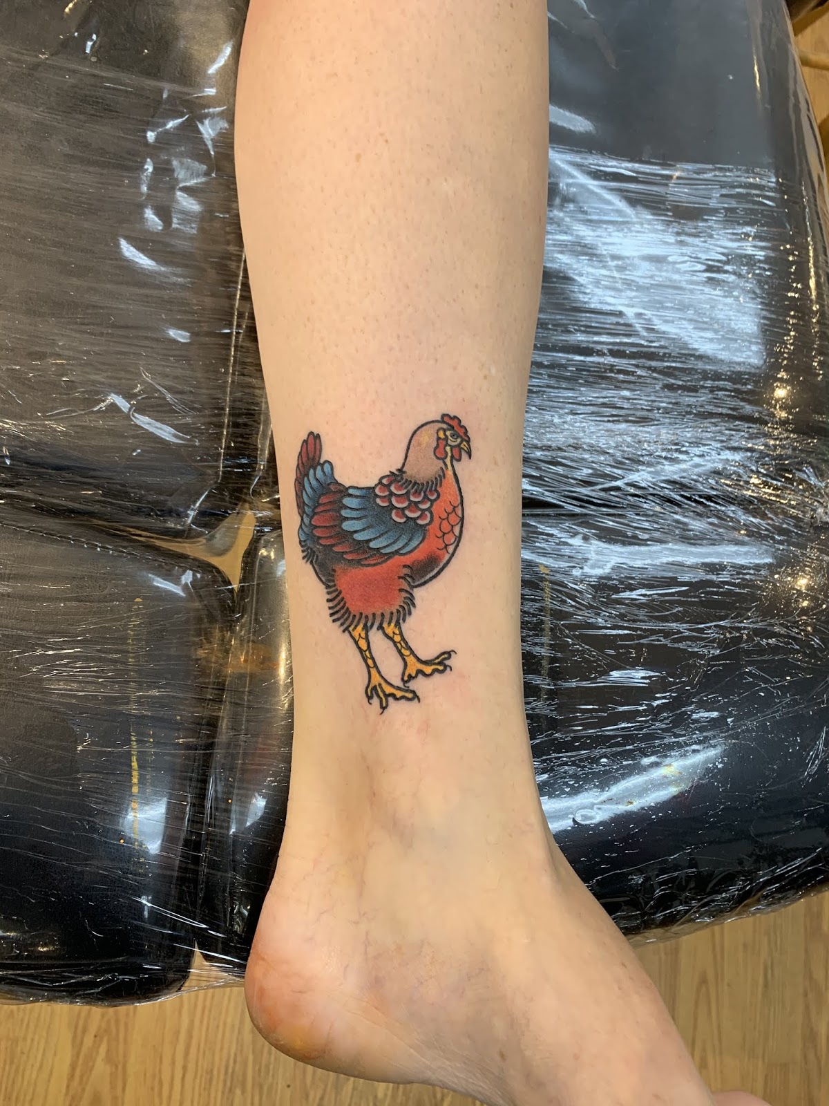 My client owns her own farm in Canada. She takes great pride in how hard she works and how successful she has become. The “Little Red Hen” is her mantra! This tattoo is my favorite of the day and even though I had a busy day, this one stands out to me.