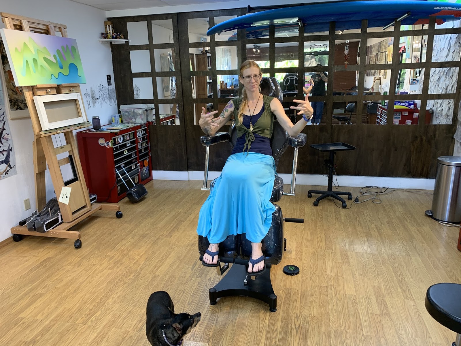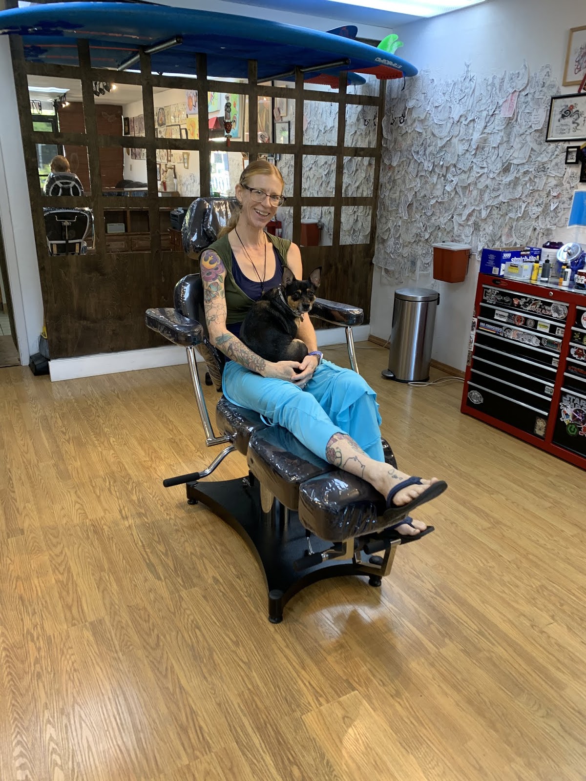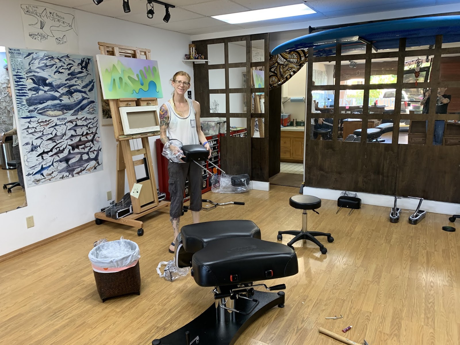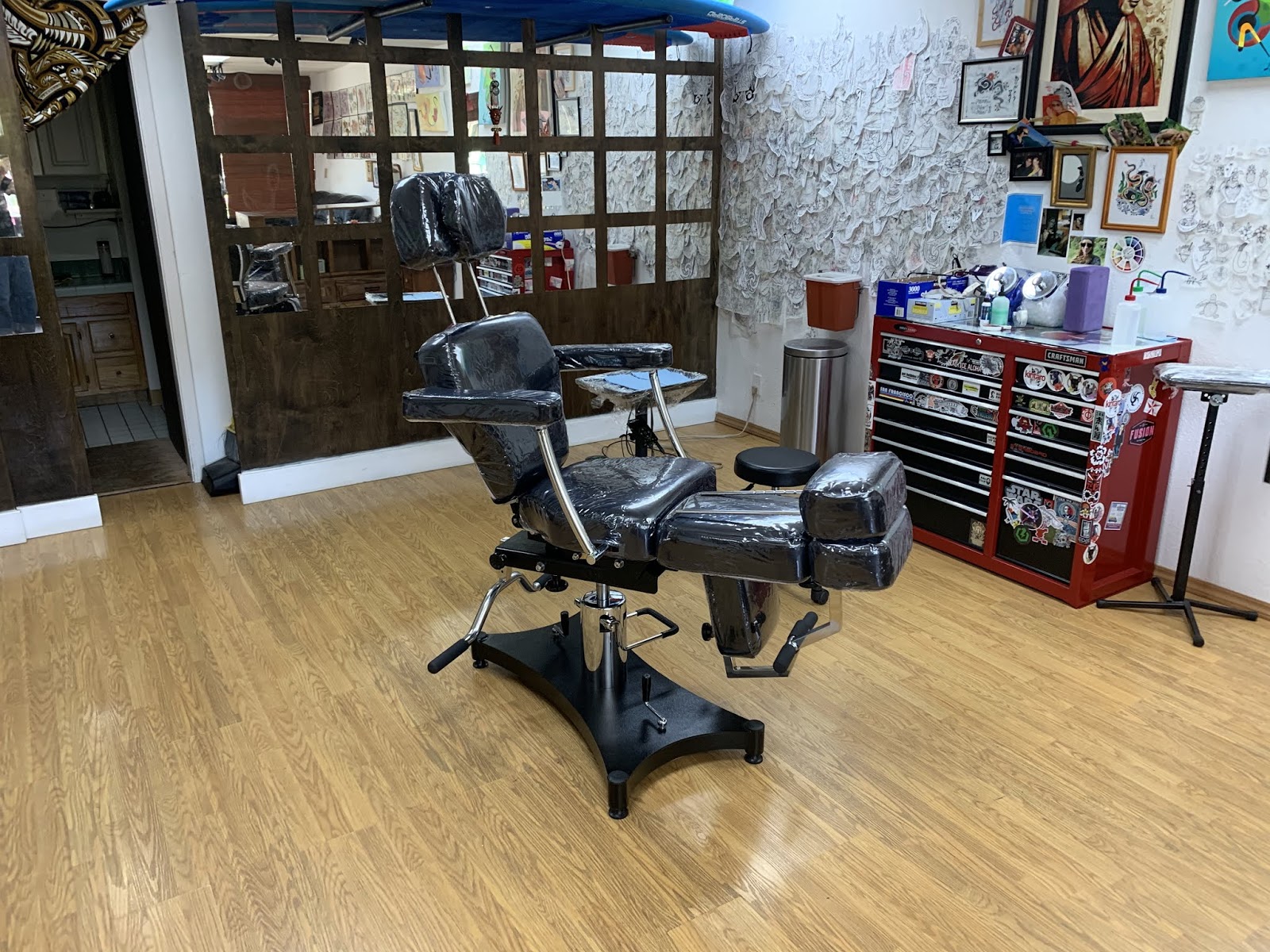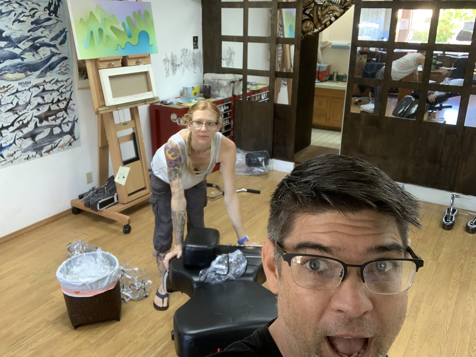 Athena and I building the chair, it was fun. We even got a couple of walk-ins as soon as it was built, so I got to tattoo out of it right away.