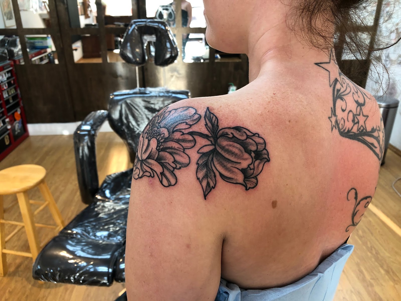 This is the beginning of a large full sleeve project. The client owns some property here on island and is here visiting and checking up on her property often. I look forward to the next session.
