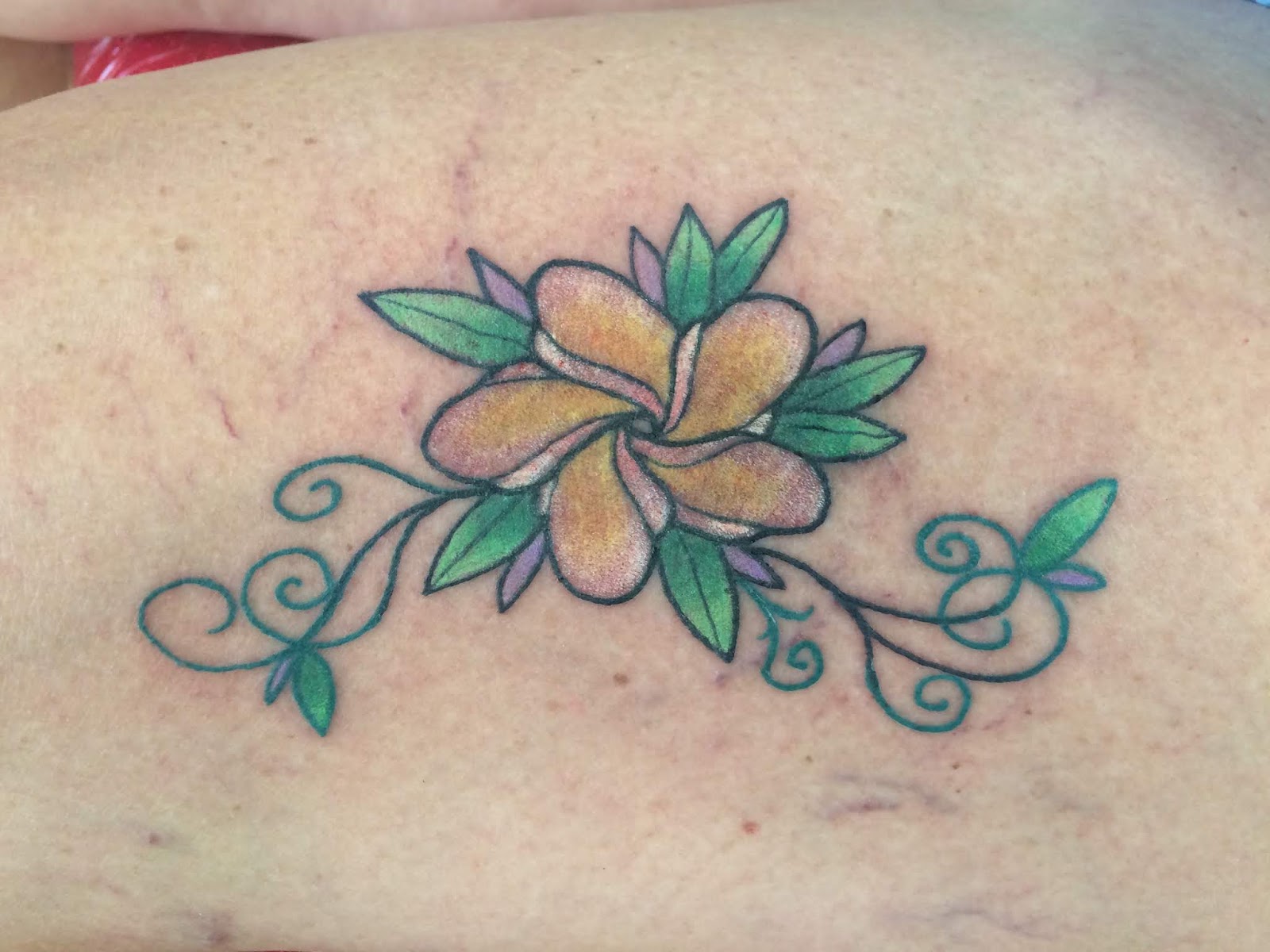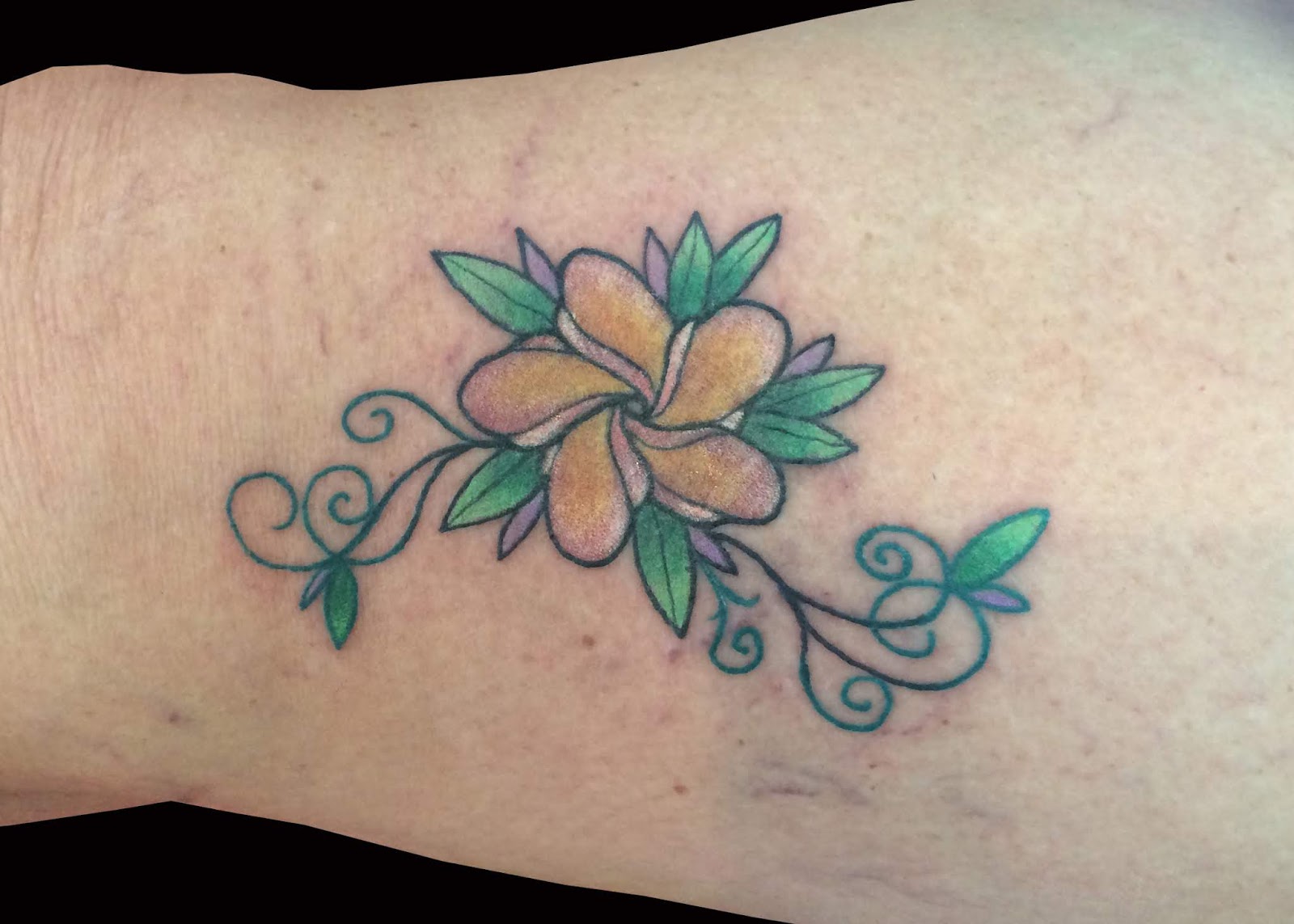 I really like this tattoo, and I think it is my favorite plumeria I have done in a long time.