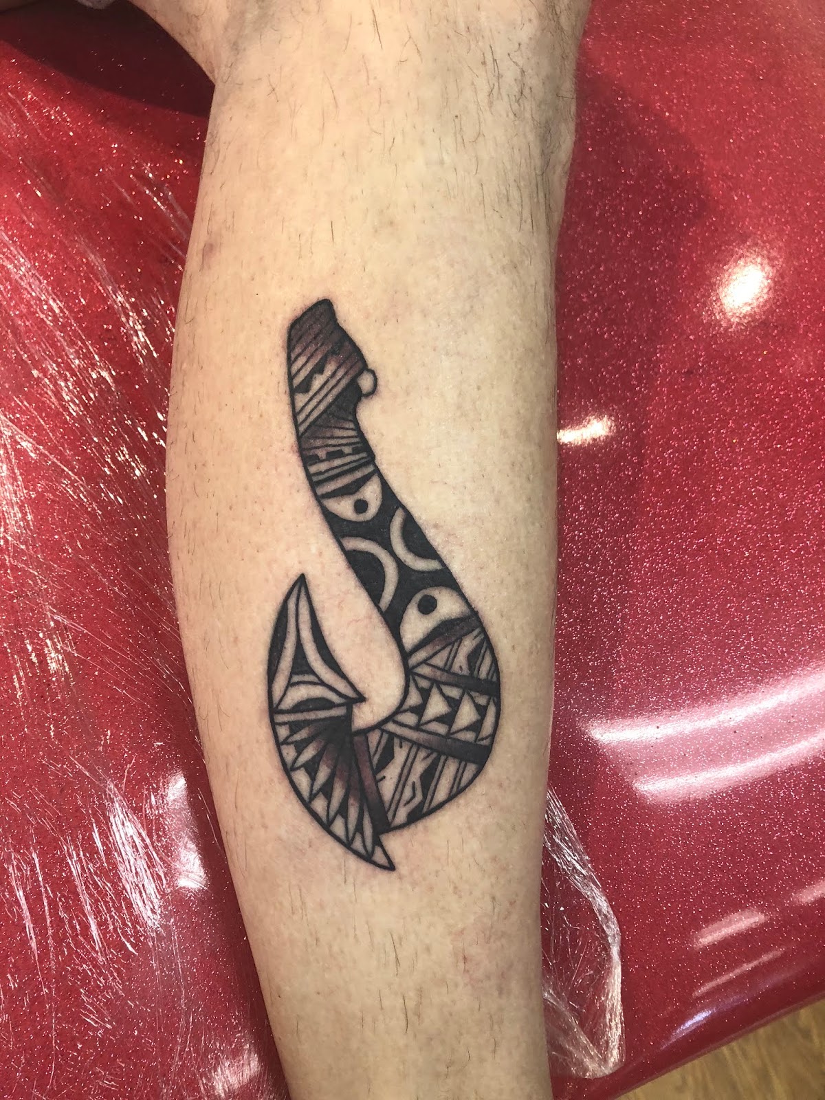 The studio is more active then I have ever seen it.  We have built a good reputation, and it is paying off.  I tattoo every day from 10am to 6pm or later.  This Polynesian tribal fishhook is my favorite of the day.