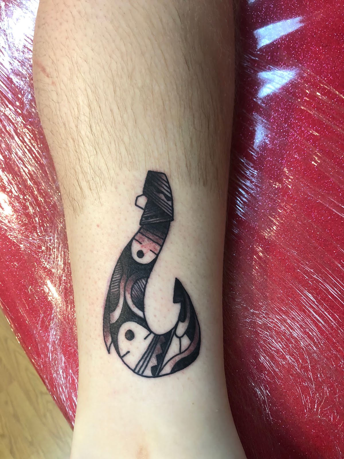 Today was a good day. I drew this Polynesian fishhook on with a sharpie. I like working from a stencil, when I have a walk in it’s just fast and easy to draw right on the client.