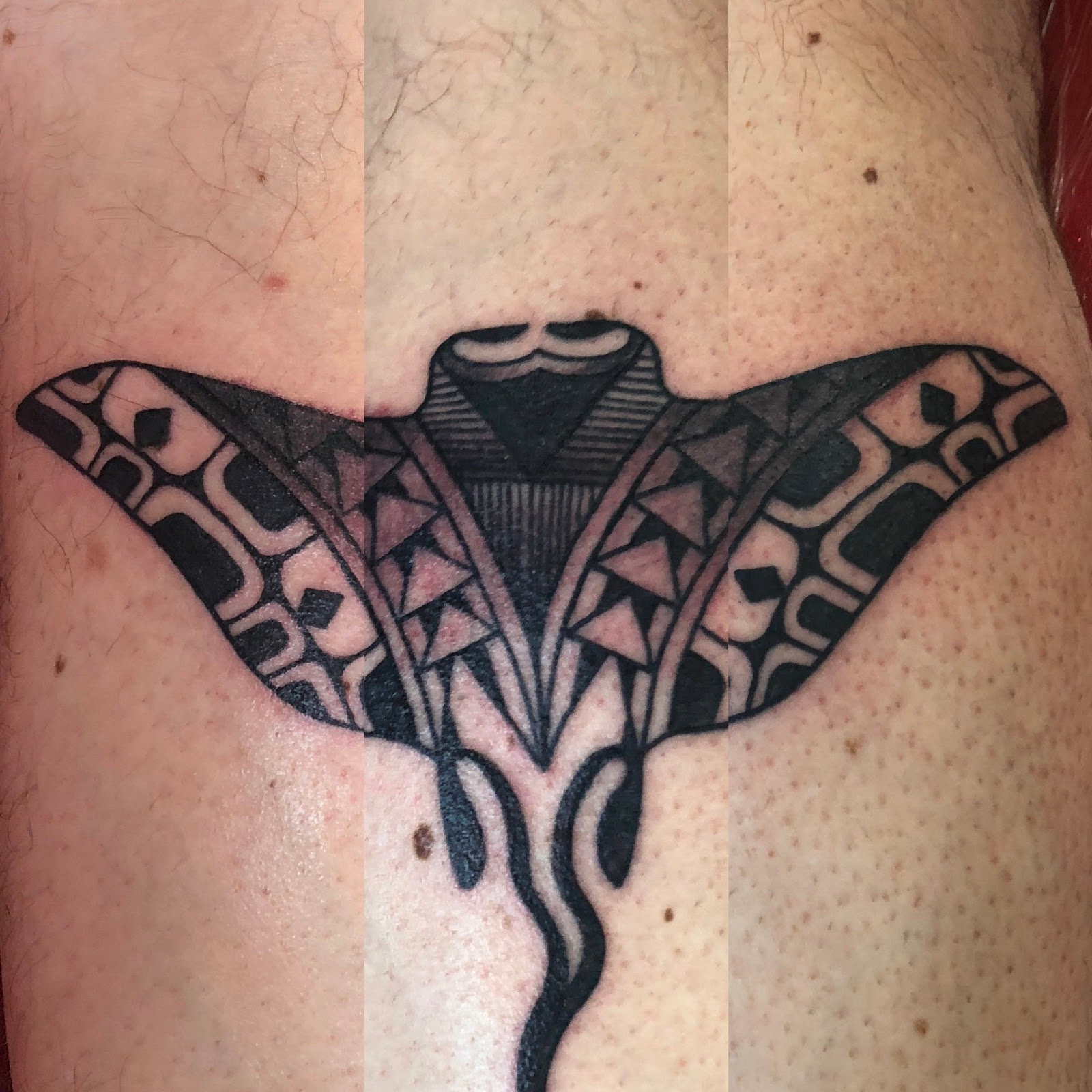 I do not get to tattoo a lot of Manta Rays. I like the subject, its just not a common Maui tattoo, and I still don’t feel like I have a complete grip of the Manta Ray forms. As a study, this was a fun tattoo.