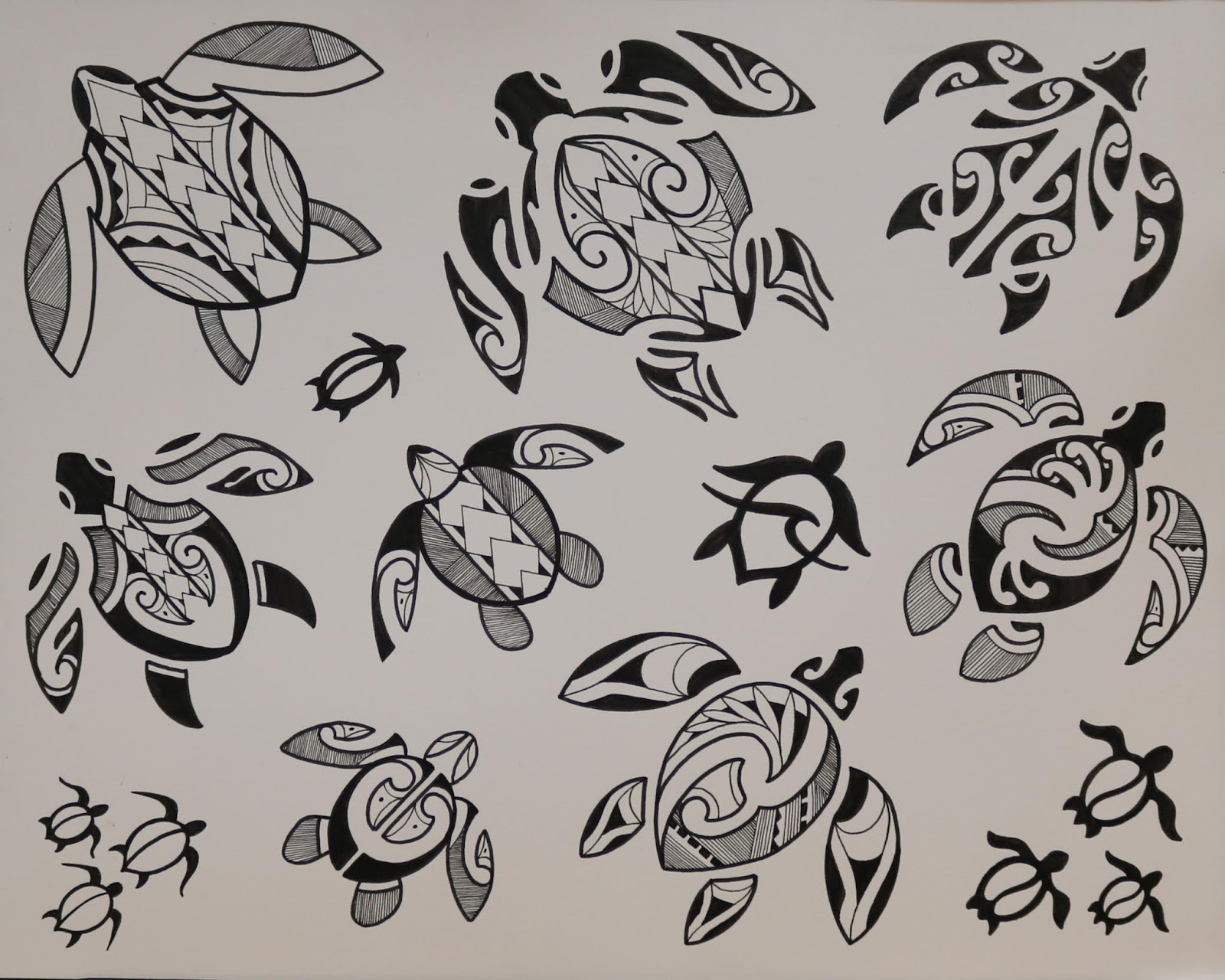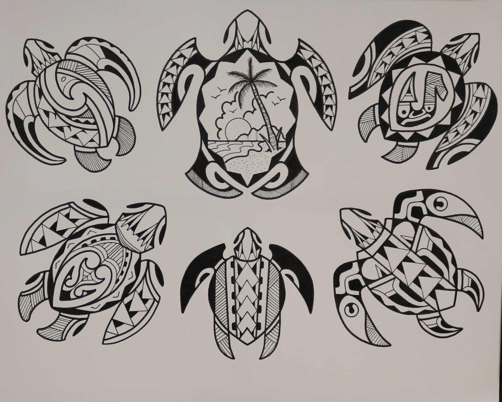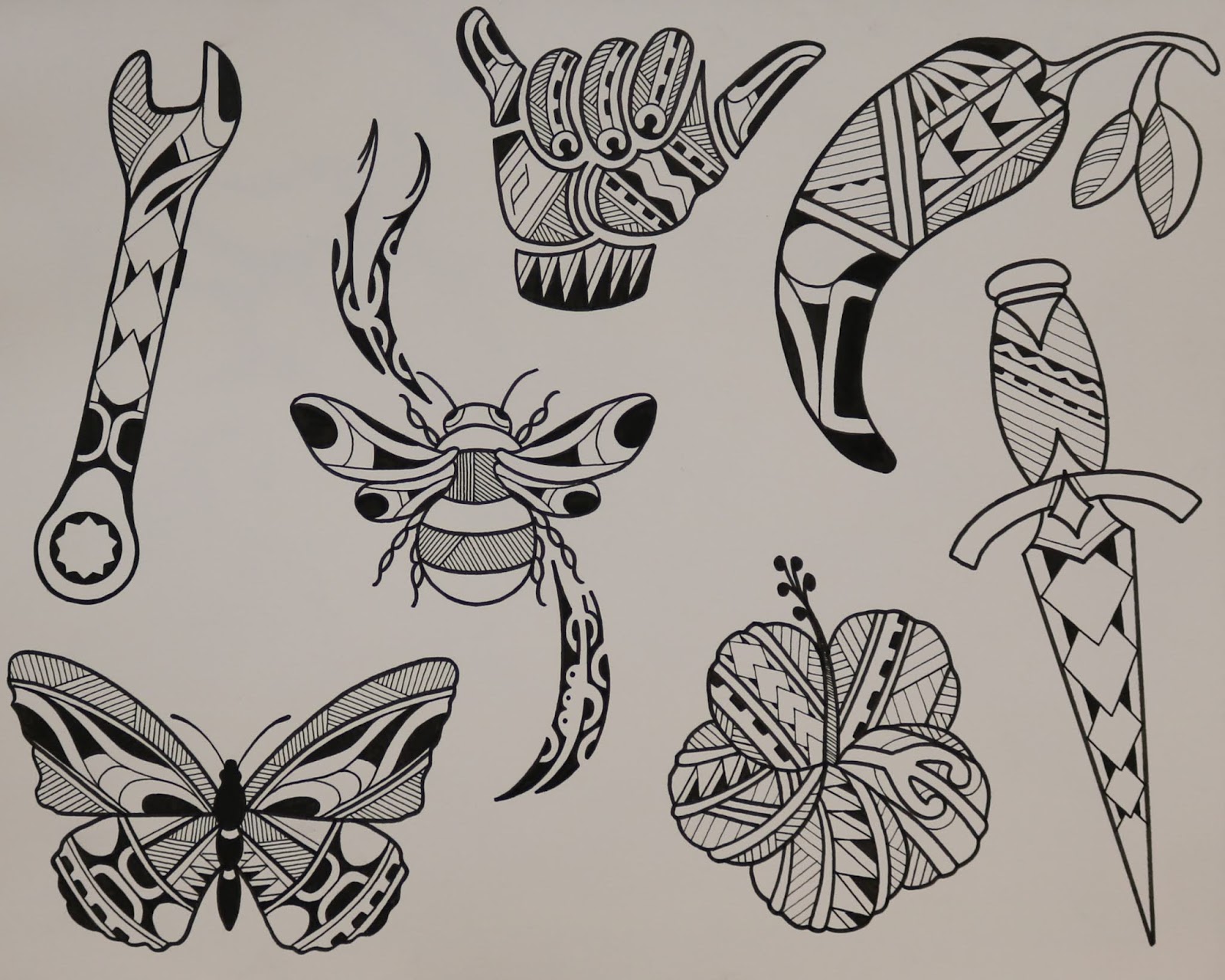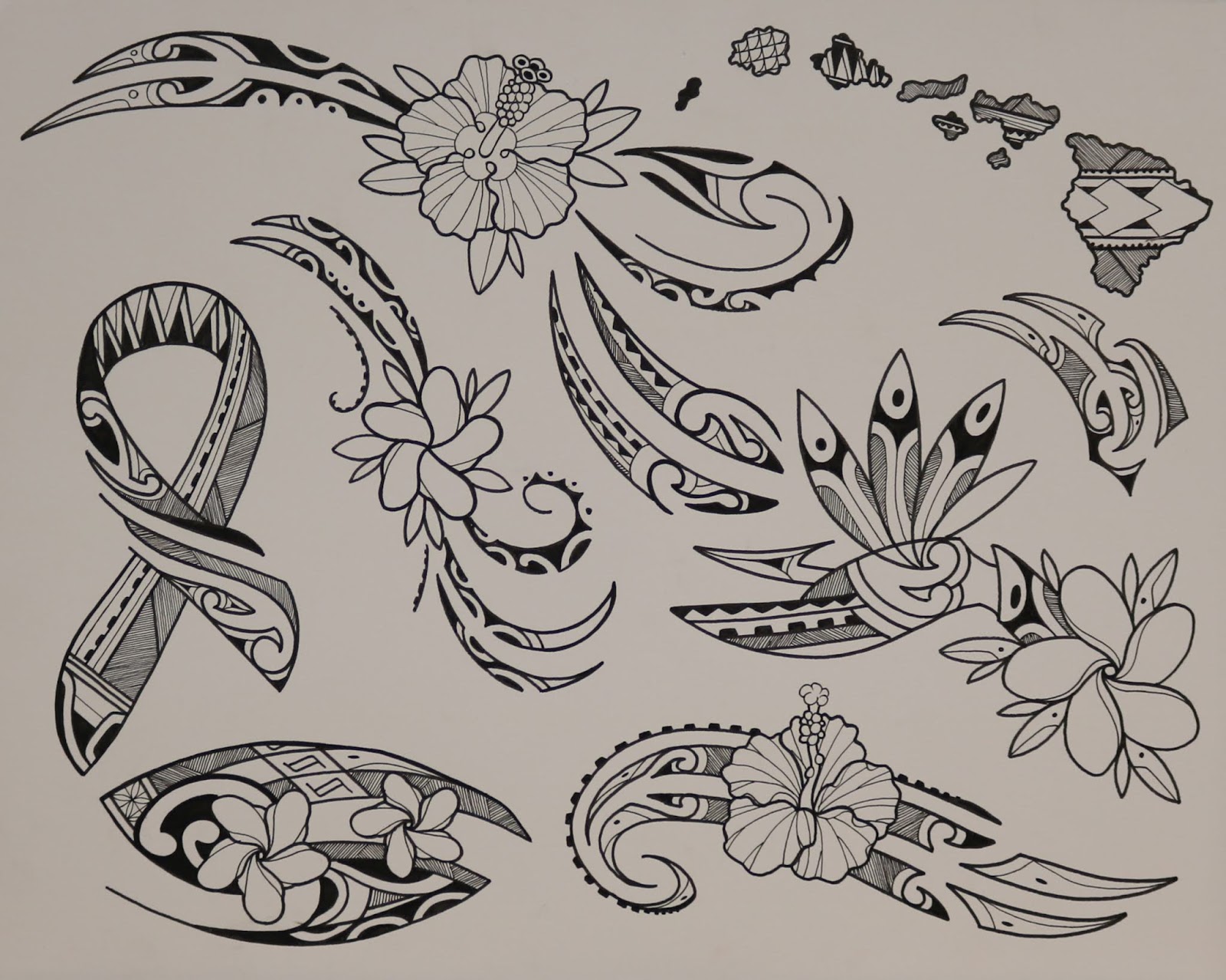 I have finally completed my Polynesian flash paintings for the studio. All of these watercolors have been tattooed. I drew this flash up almost a year ago, and just kept painting it as I tattooed it. I really had a good time going through all of these. I am on to a new flash project at the moment, and I will post that as soon as I have tattooed it all.