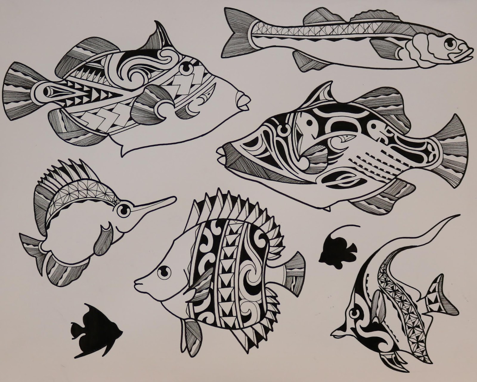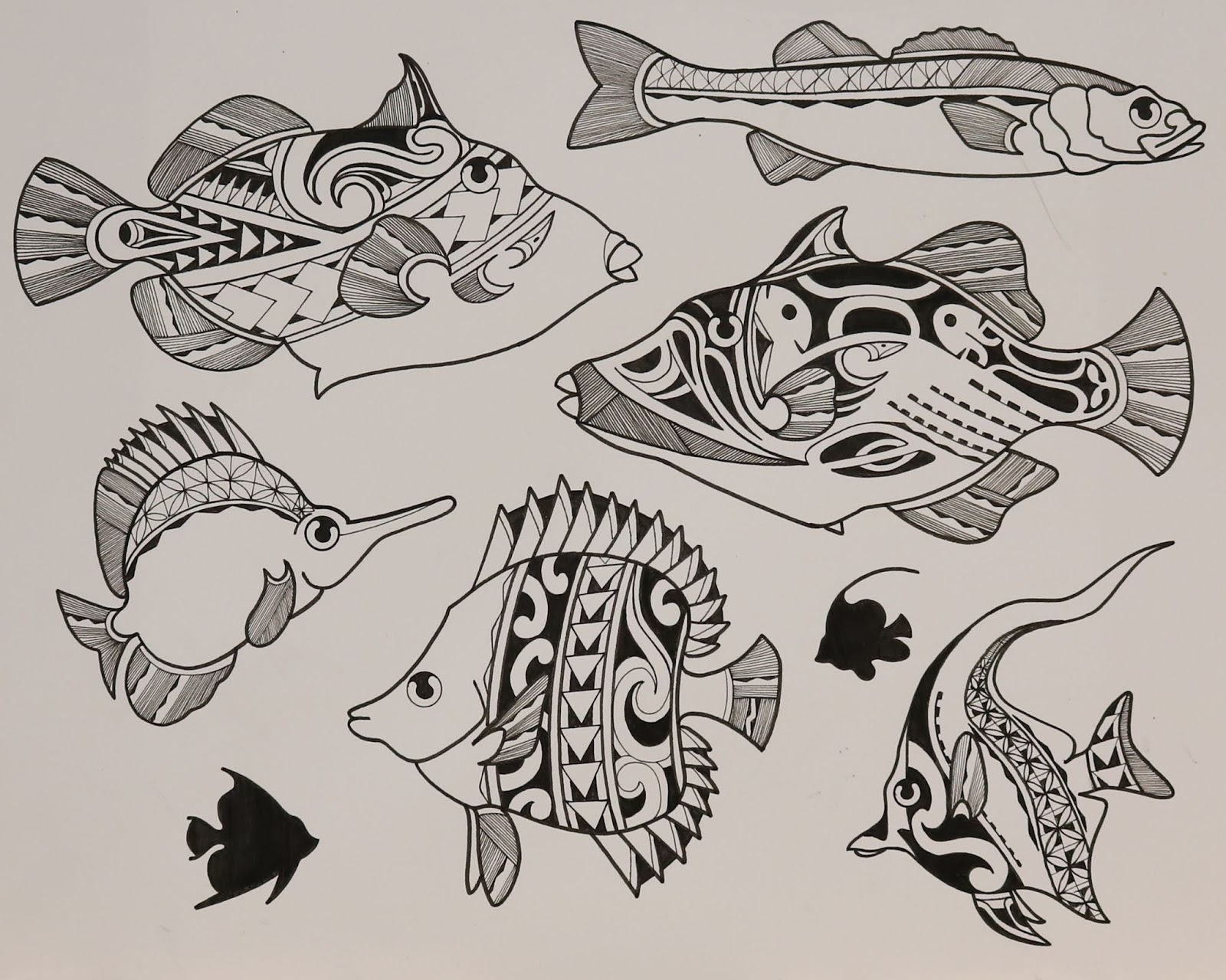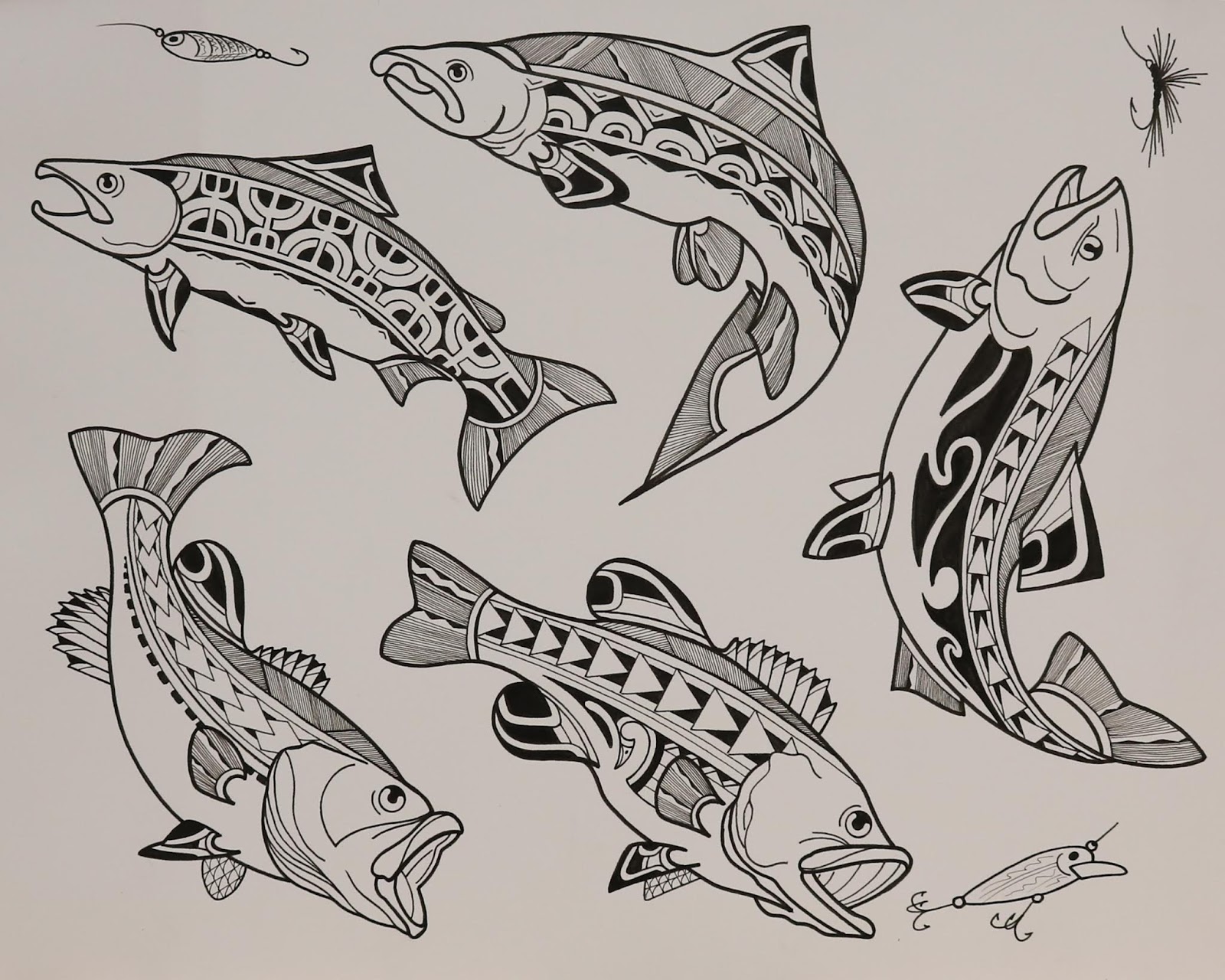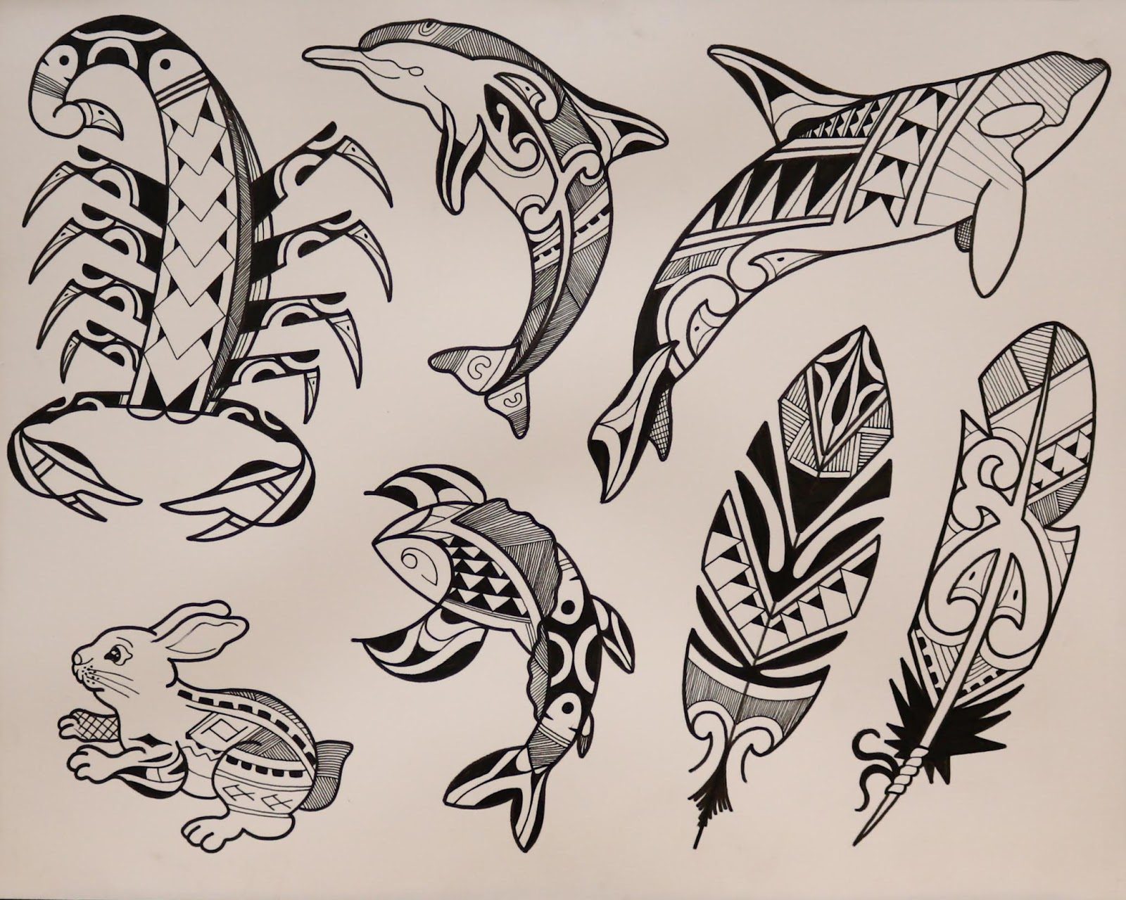 I have finally completed my Polynesian flash paintings for the studio. All of these watercolors have been tattooed. I drew this flash up almost a year ago, and just kept painting it as I tattooed it. I really had a good time going through all of these. I am on to a new flash project at the moment, and I will post that as soon as I have tattooed it all.