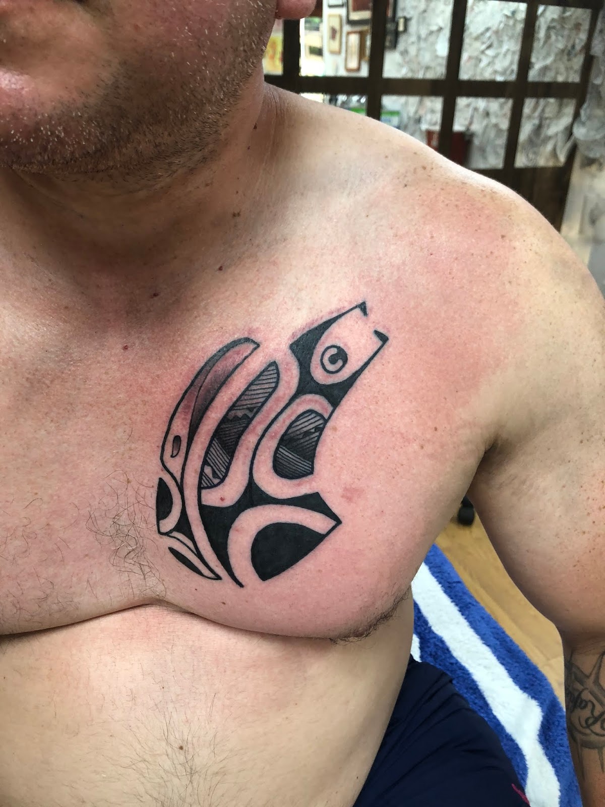 This client and I are building a chest tattoo that will wrap around his back and onto the arm.