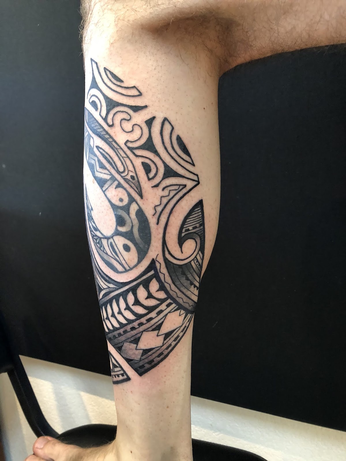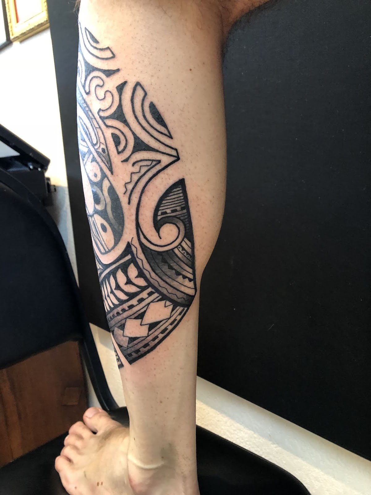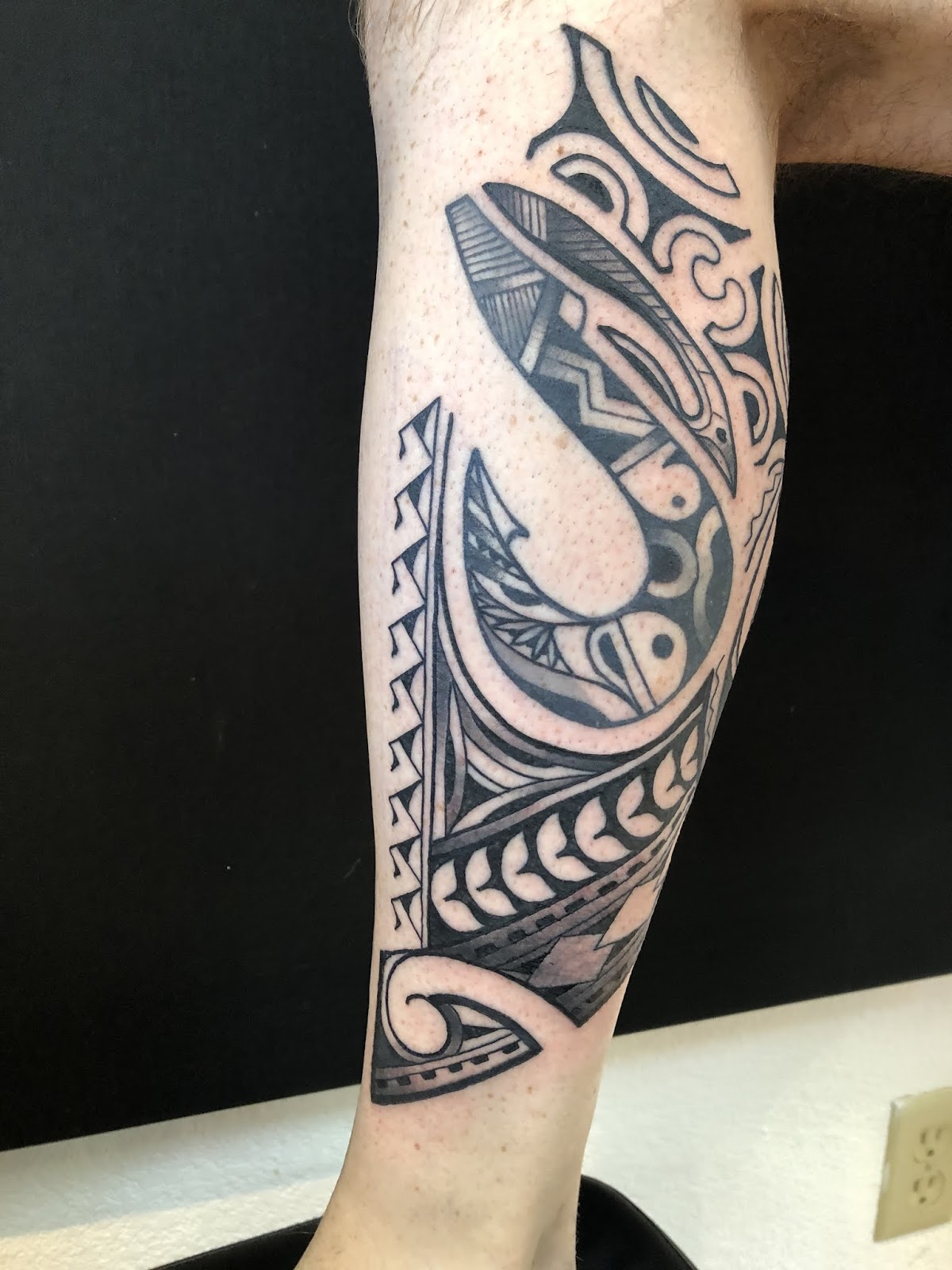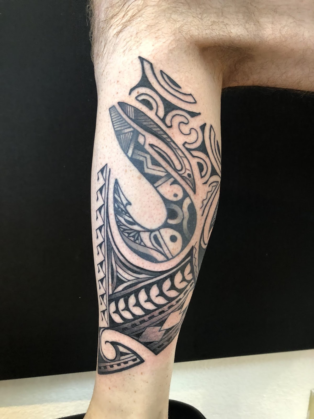 This client came back for a second session to add some forms onto his fishhook he got last year. He is going to be back in a few months to complete the bottom of his leg with me.