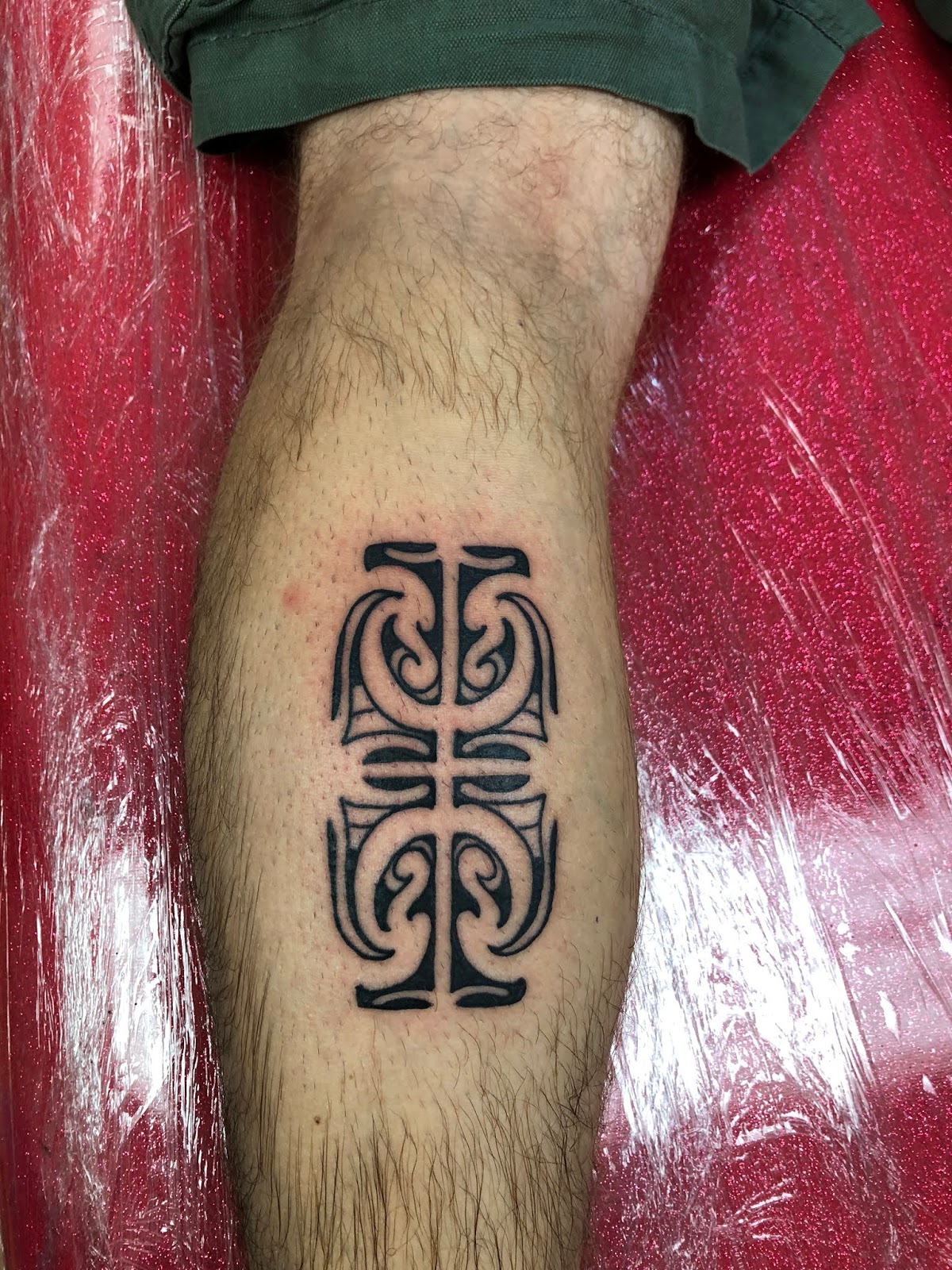 I like to play with the compositions of tribal tattoos. This tattoo is a matriarchal form about creative beginnings within a matriarchs life as a parent. It says all of that, but in a different manner, however I am not going to lay out the language for you here today. My book coming out in a year or so will detail all of that.
