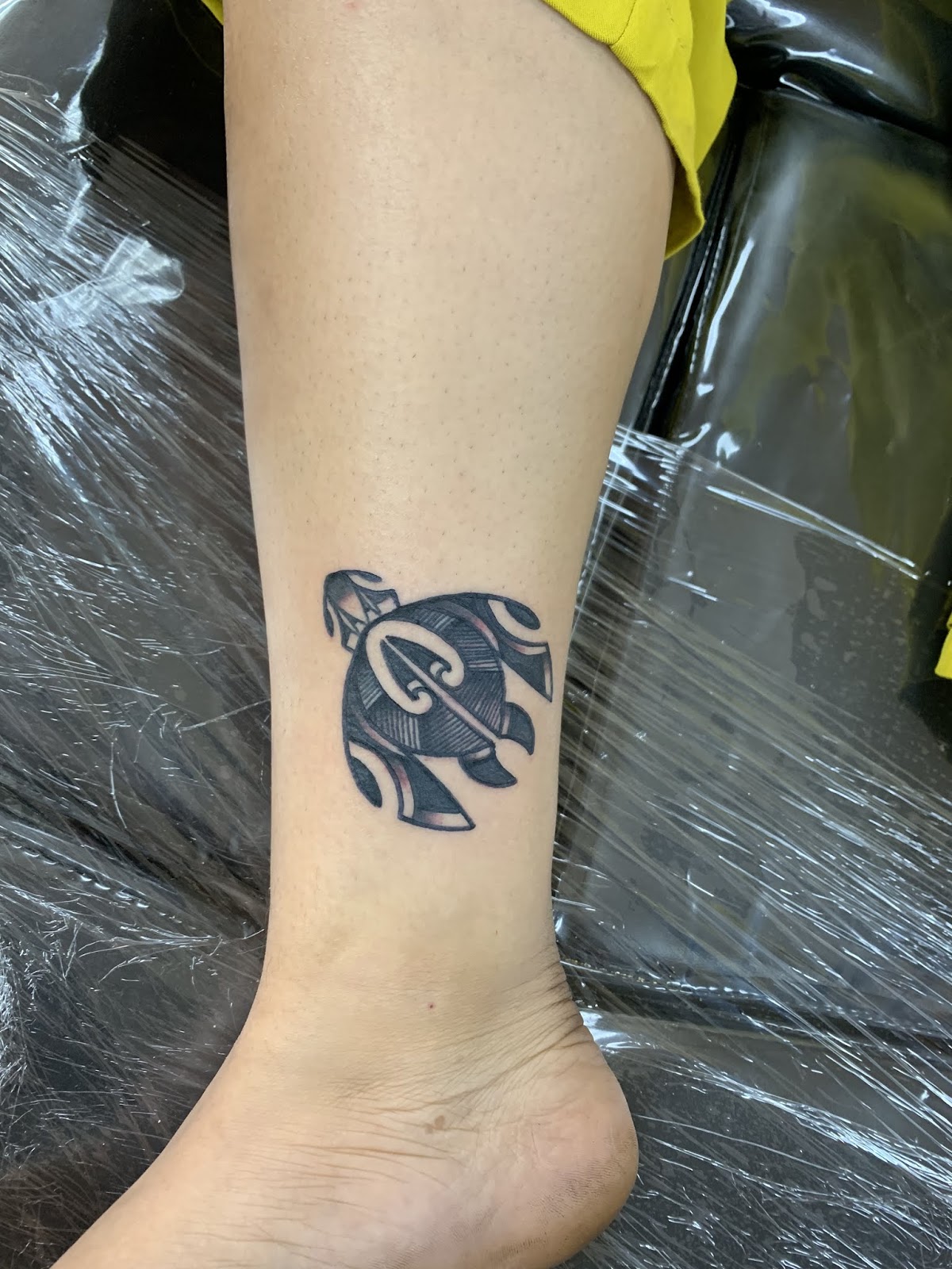 It has been a very good week. I made 11 tattoos today, this is my favorite of the day. I really like working on tribal turtles, and I really like working the sigils toward a meaning for the client.