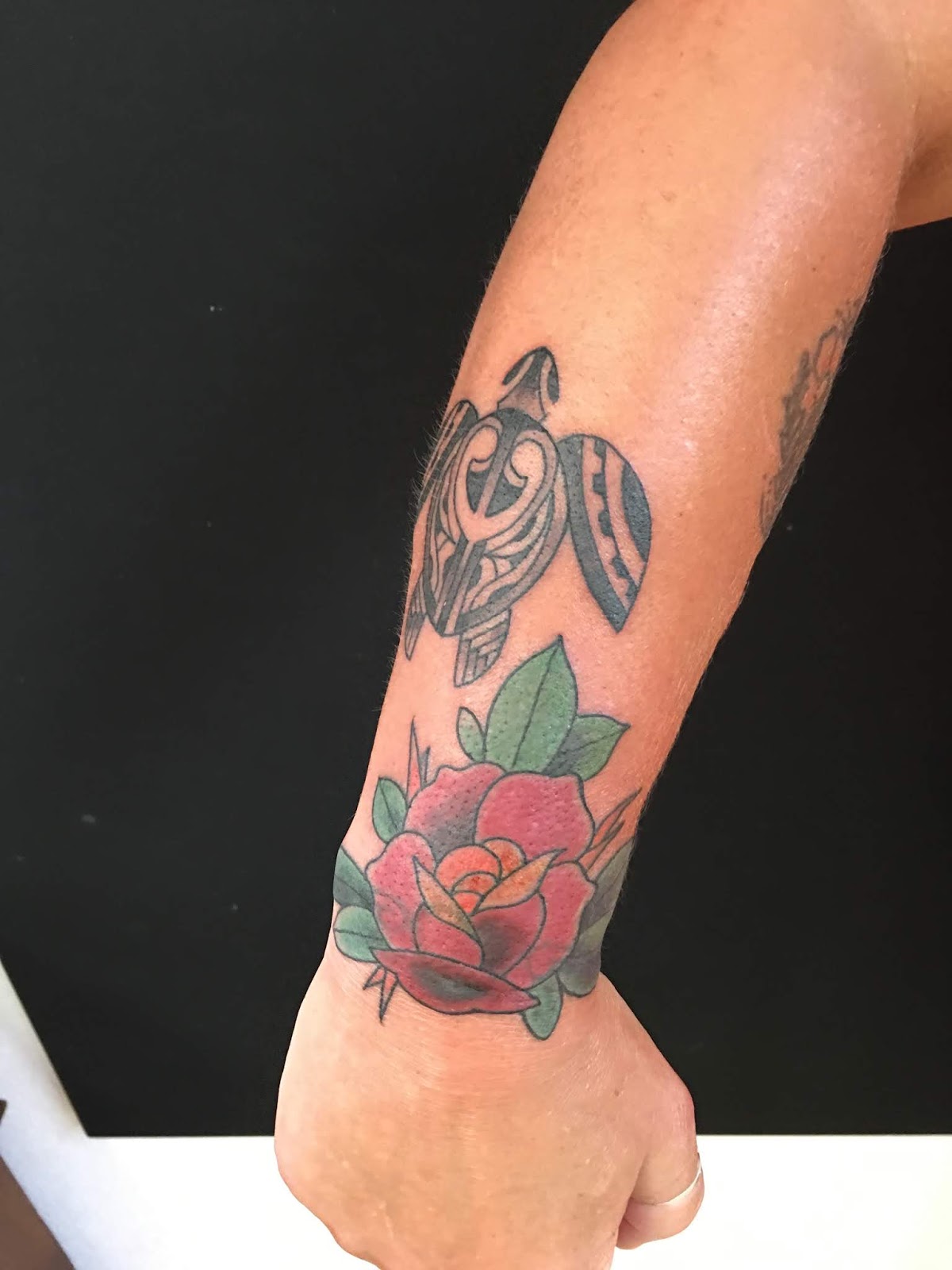 I like working on American Traditional tattoos, and I like tribal turtles.