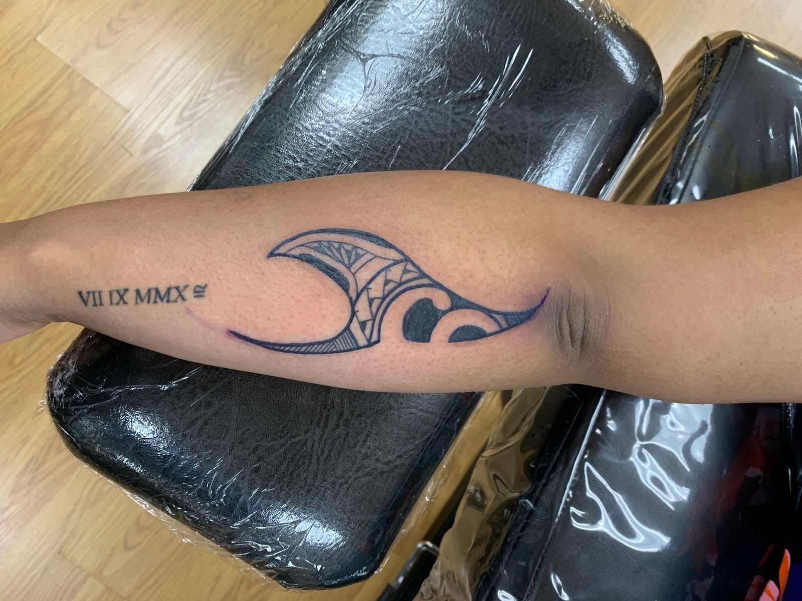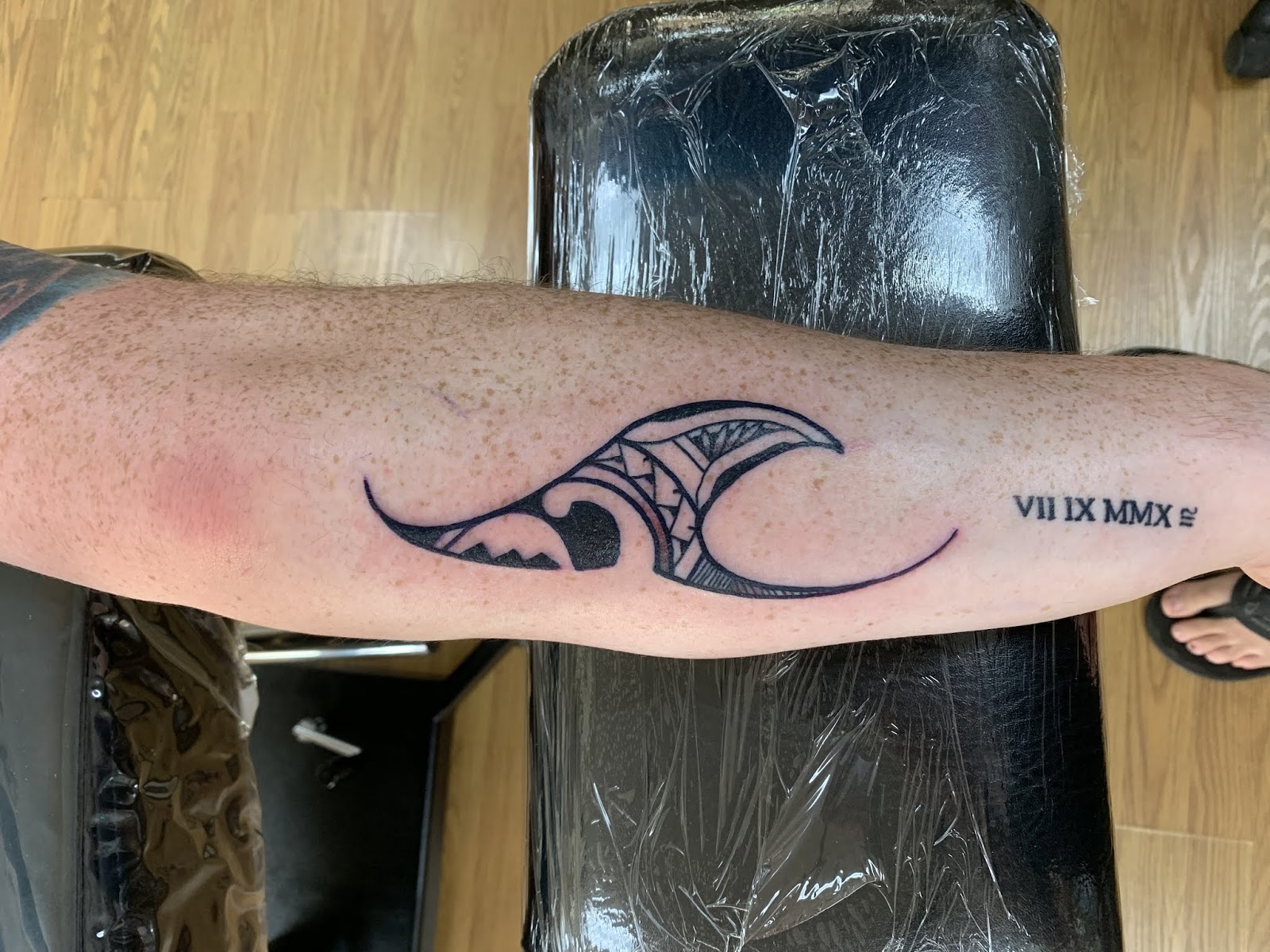 These two were cool to work with. His and hers Polynesian wave tattoos.