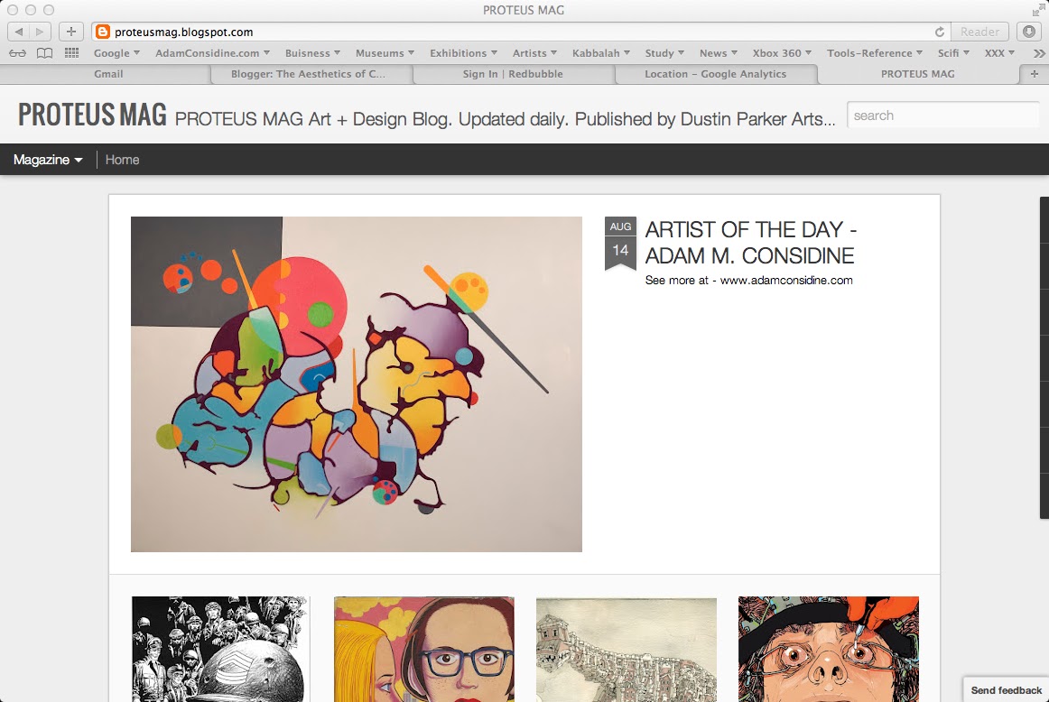 Dustin parker at Proteus Mag was kind enough to feature me as on of his artist of the day. I was featured in one of his earlier publications, Issue 2 of the magazine (summer of 2007). Proteus Mag has evolved into a full-on blog daily featuring artists from around the world.