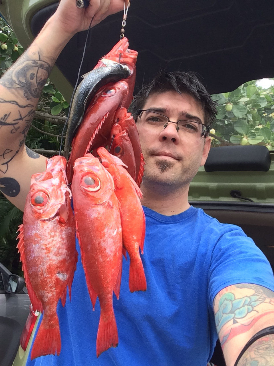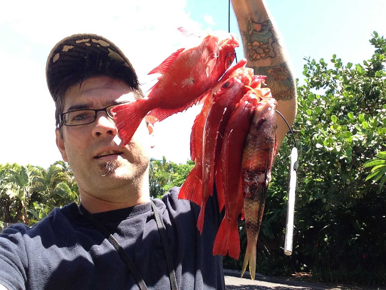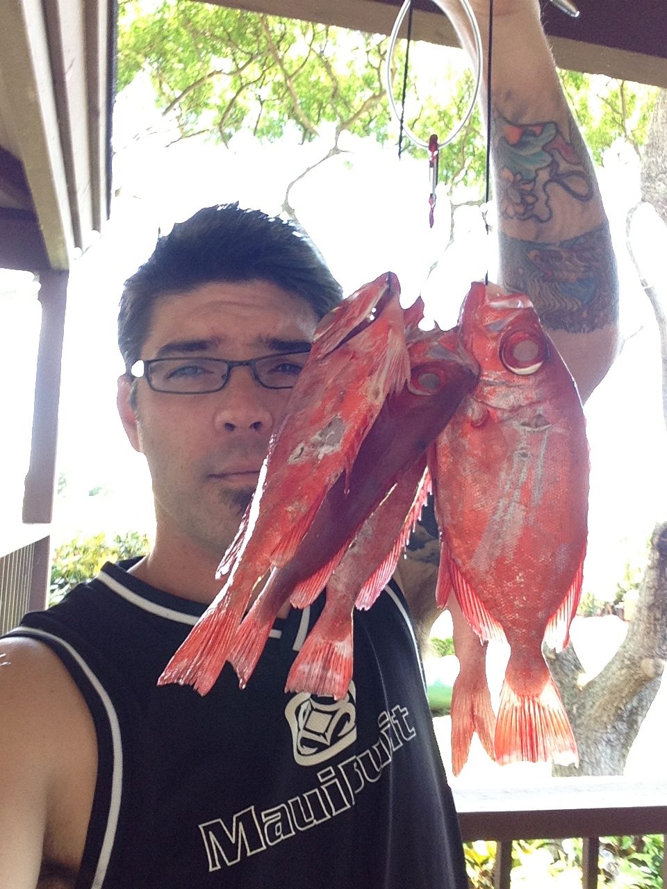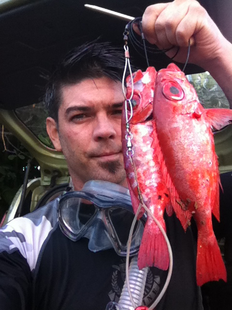 I love spear fishing. My favorite fish to eat it the Aweoweo Hawaiian big eye.