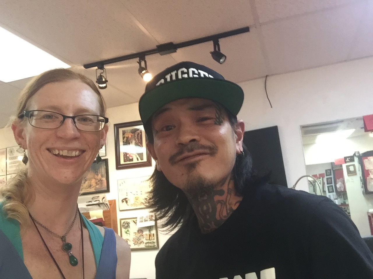 Athena and Trevor triumphantly showing off her new ink.