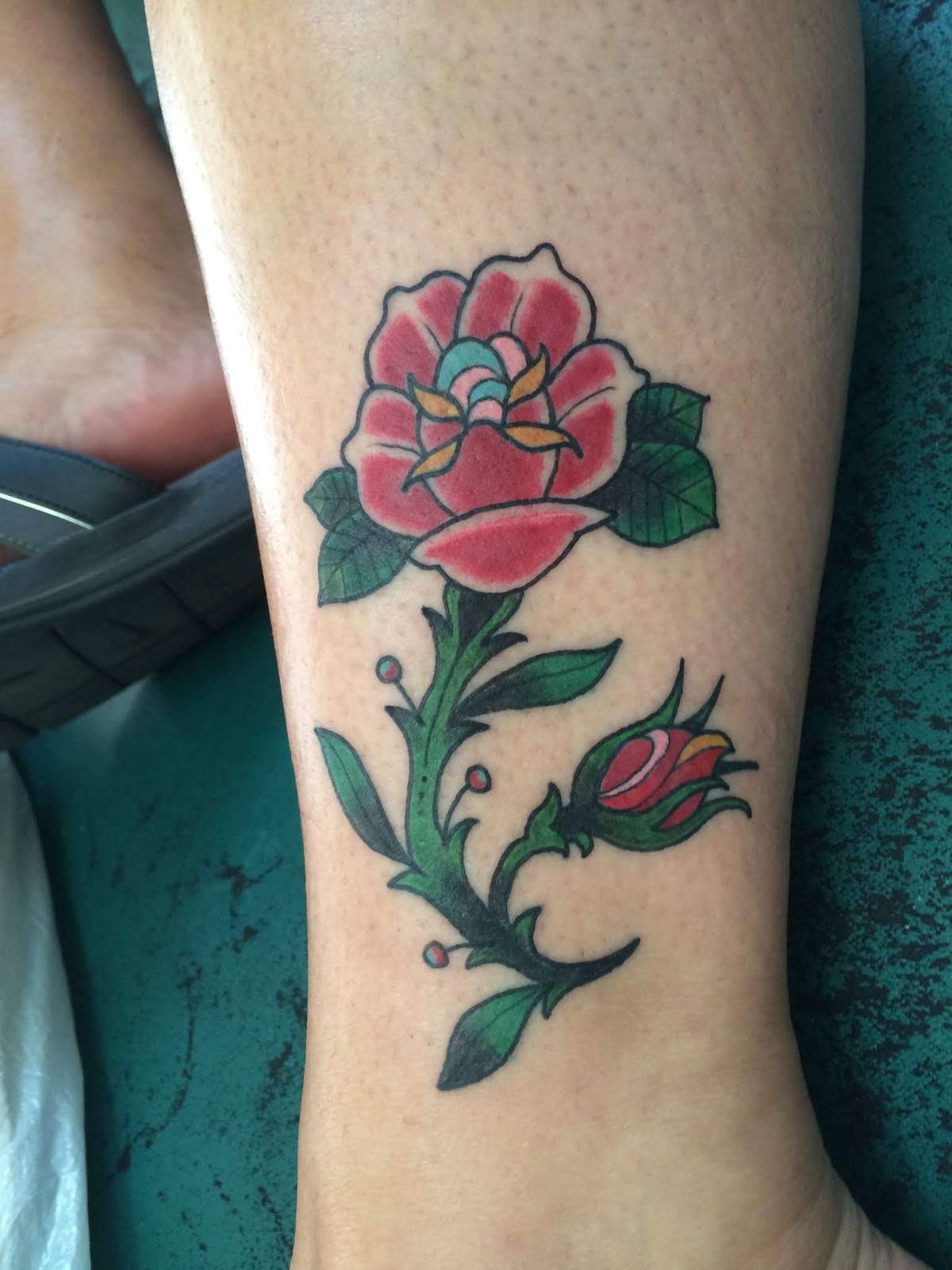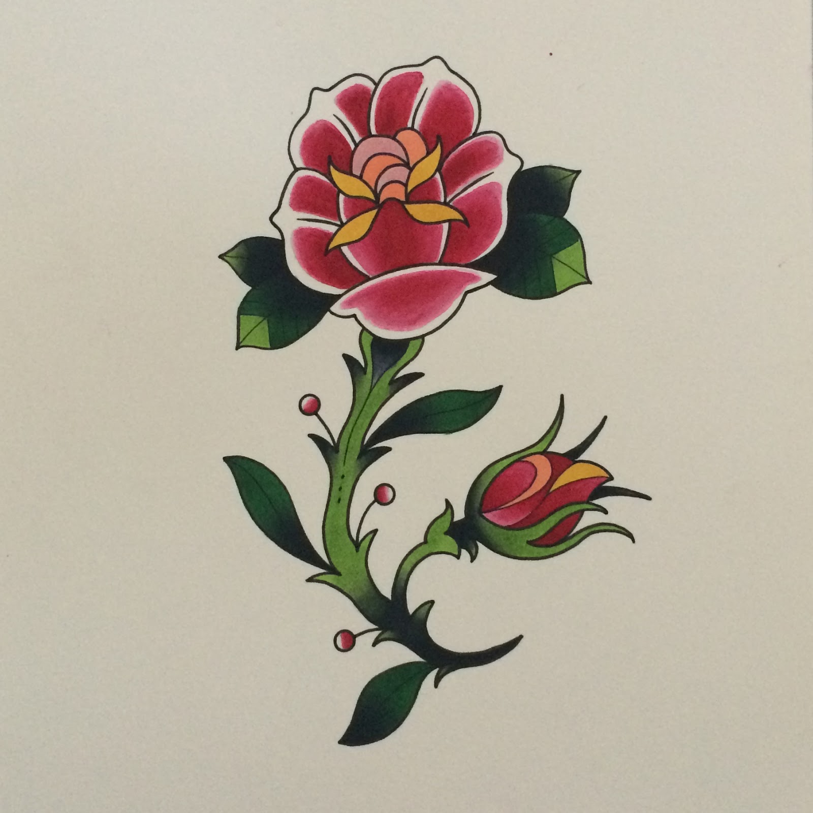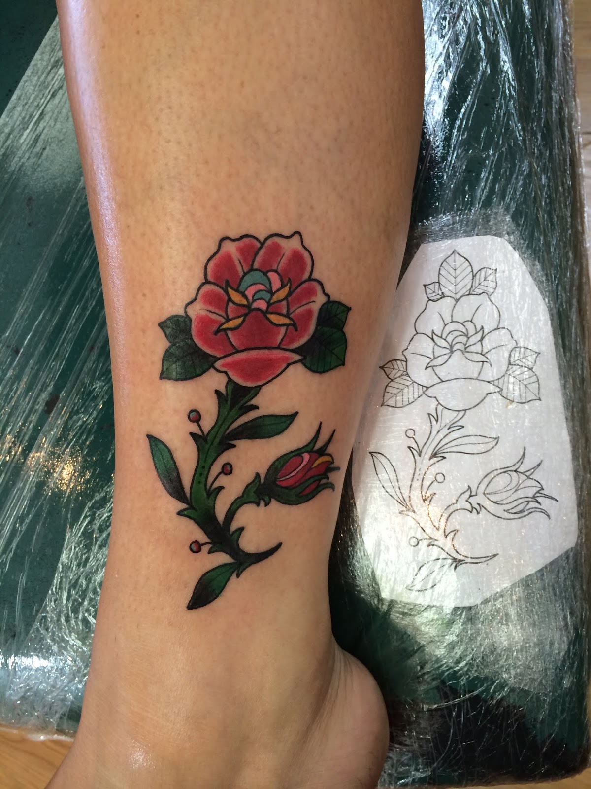 I painted an American Traditional rose a few days ago, and the client loved the work so we tattooed it.