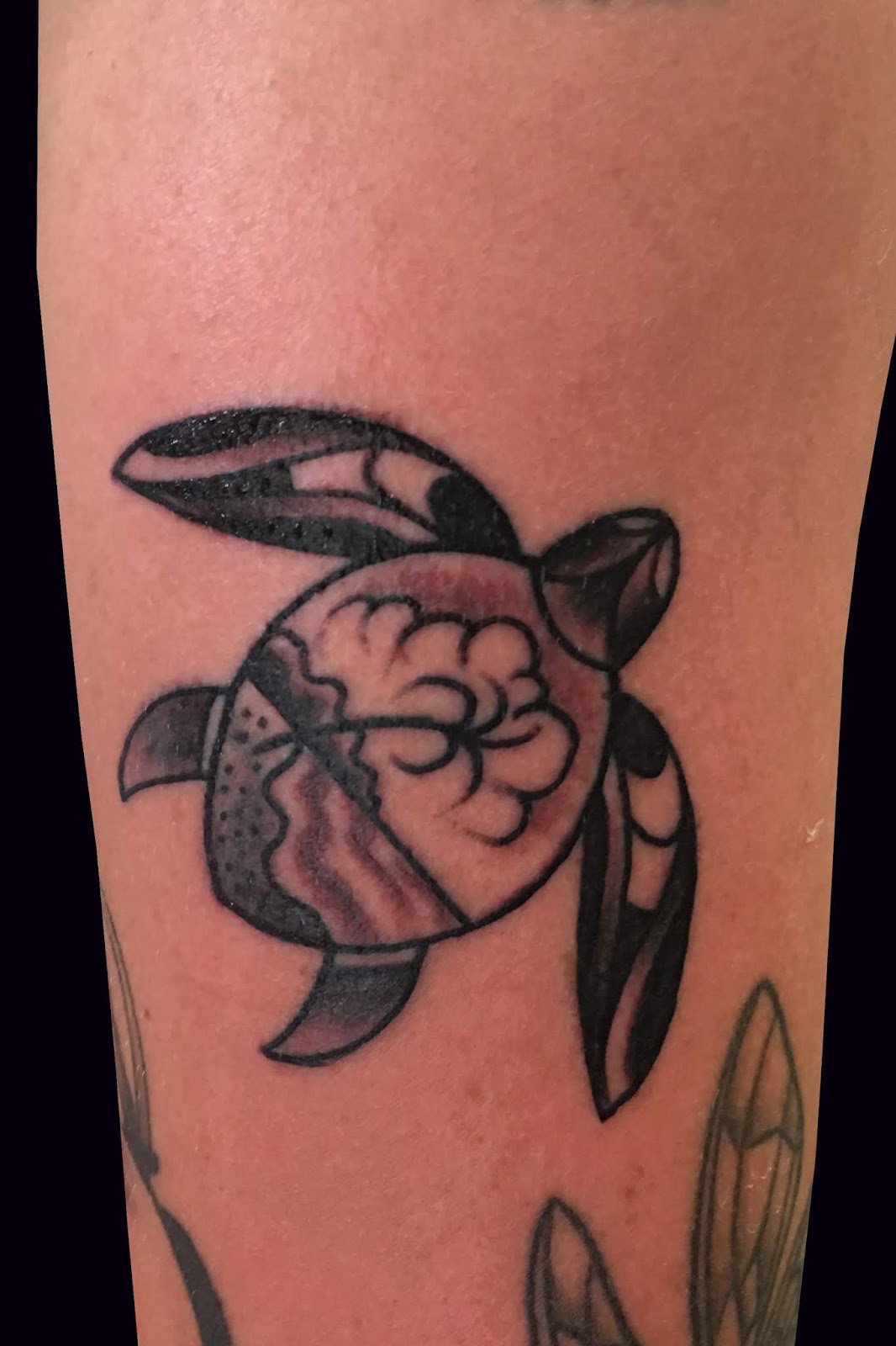 Fun walk-in today.  A Polynesian tribal turtle with a beach scene in its shell.
